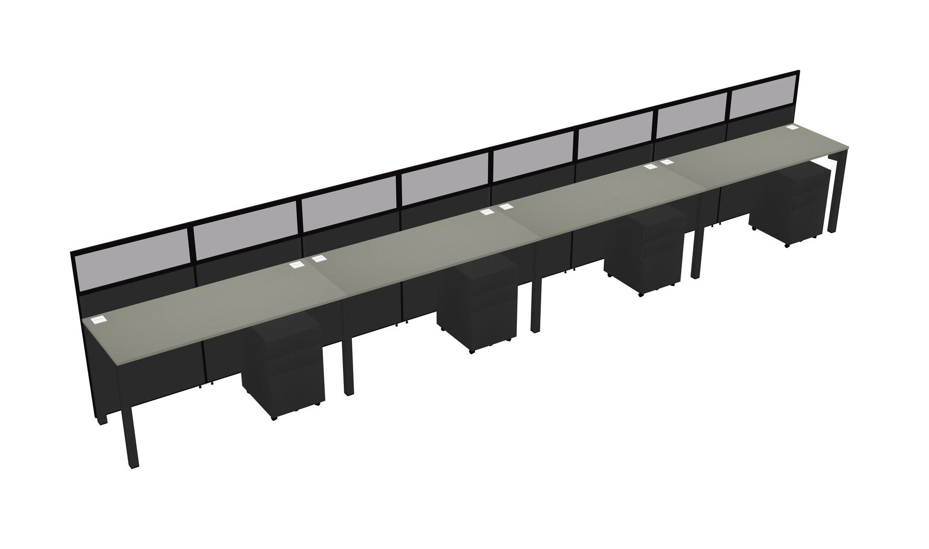 Grey Shadows Shared Rectangular Office Cubicle Panel System With Mobile Drawers For 4 Persons