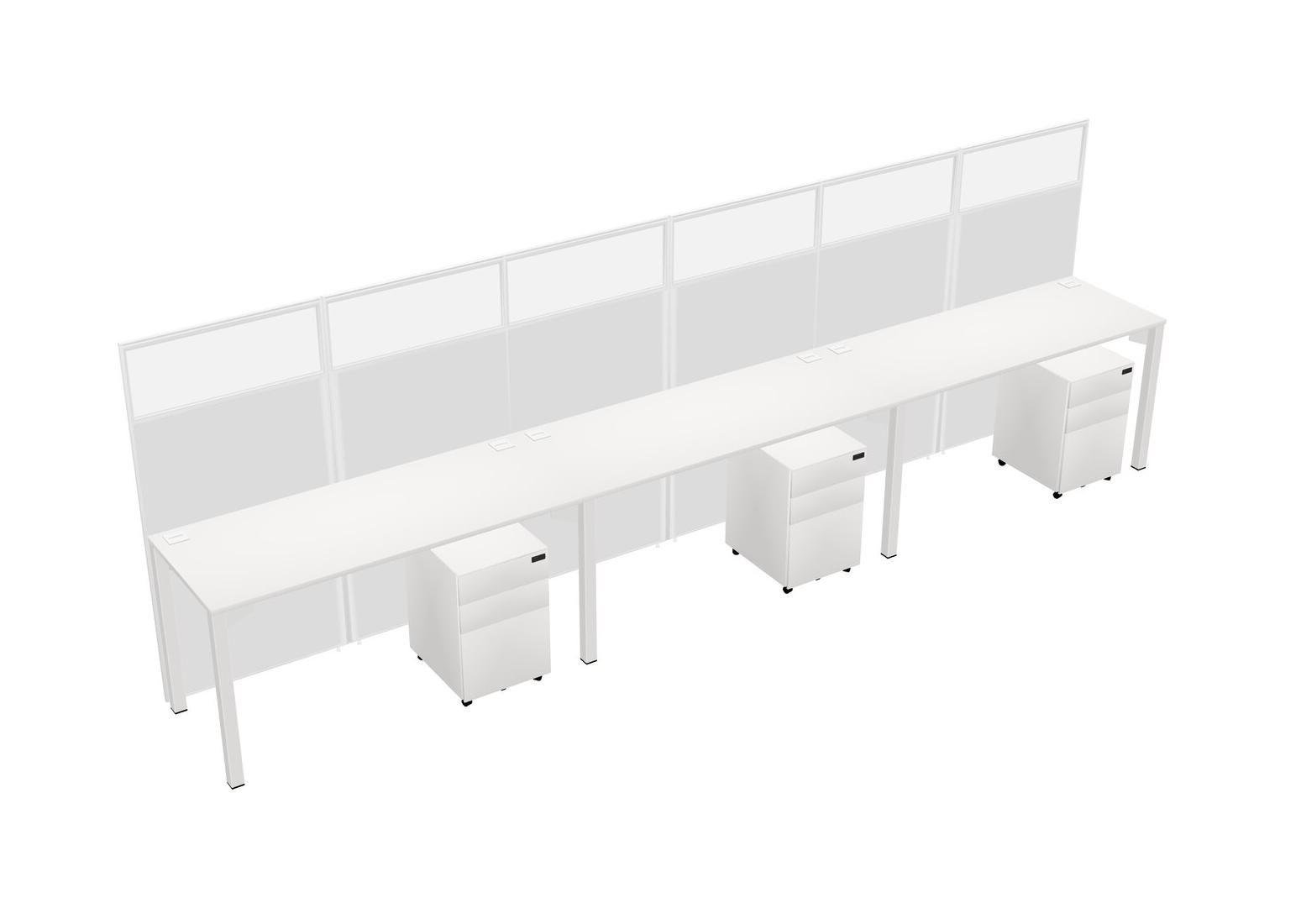White Shared Rectangular Office Cubicle Panel System With Mobile Drawers For 3 Persons