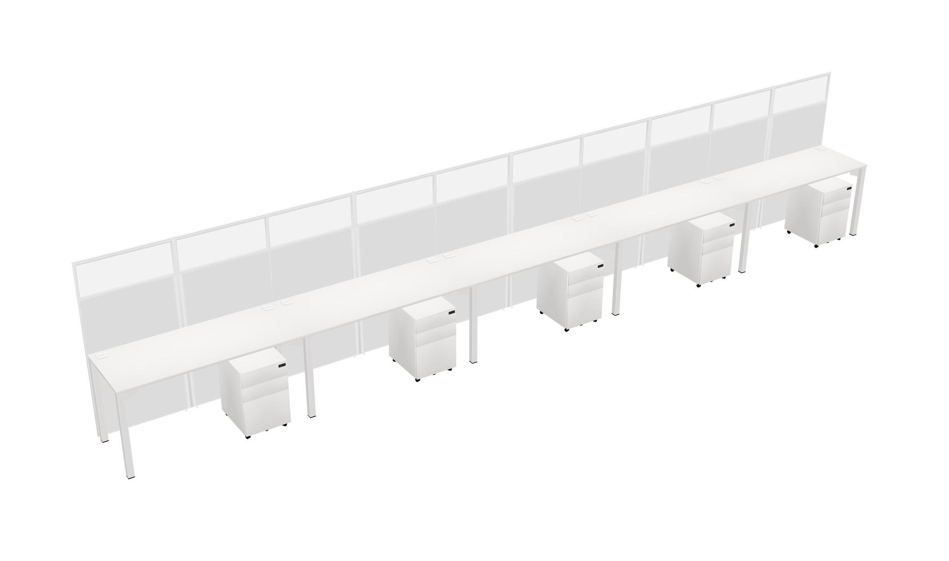 White Shared Rectangular Office Cubicle Panel System With Mobile Drawers For 5 Persons