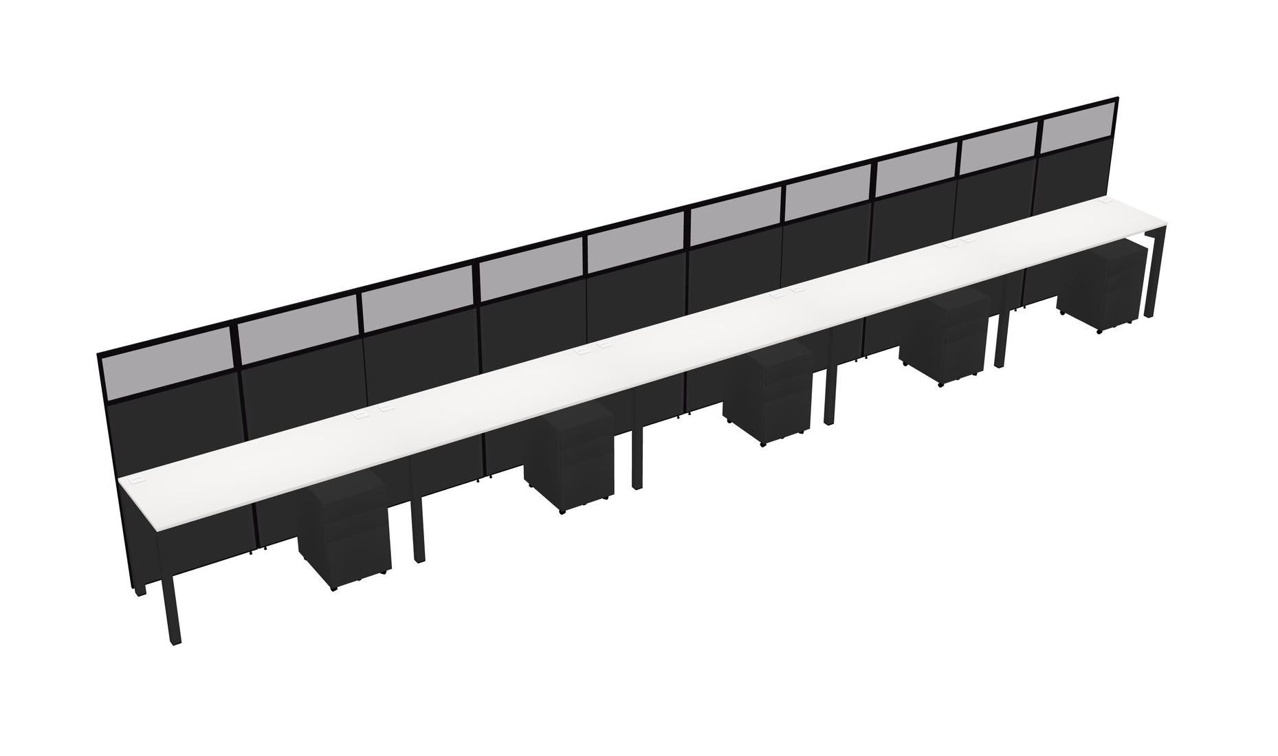 White Shared Rectangular Office Cubicle Panel System With Mobile Drawers For 5 Persons