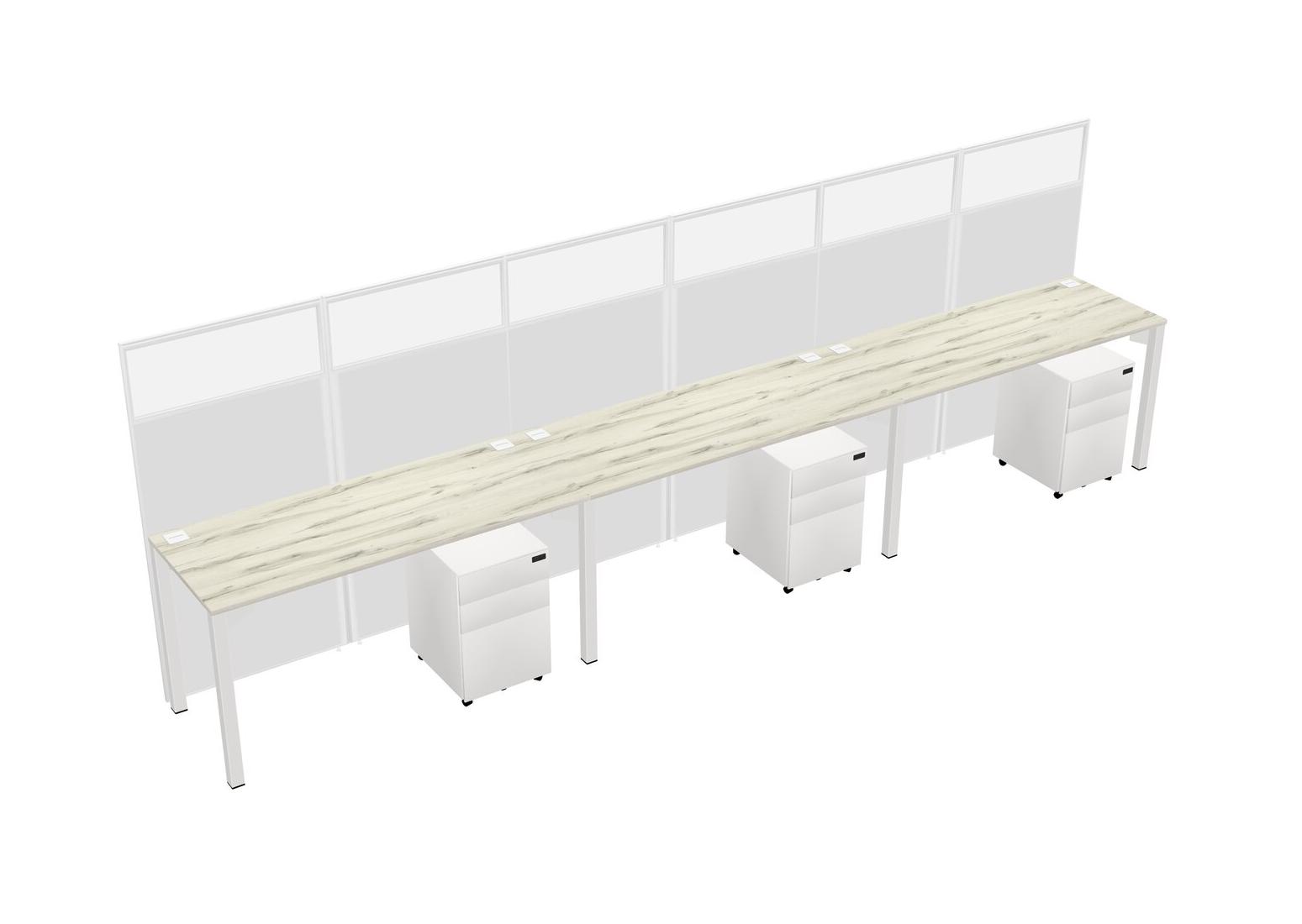 Heinne Holz Shared Rectangular Office Cubicle Panel System With Mobile Drawers For 3 Persons