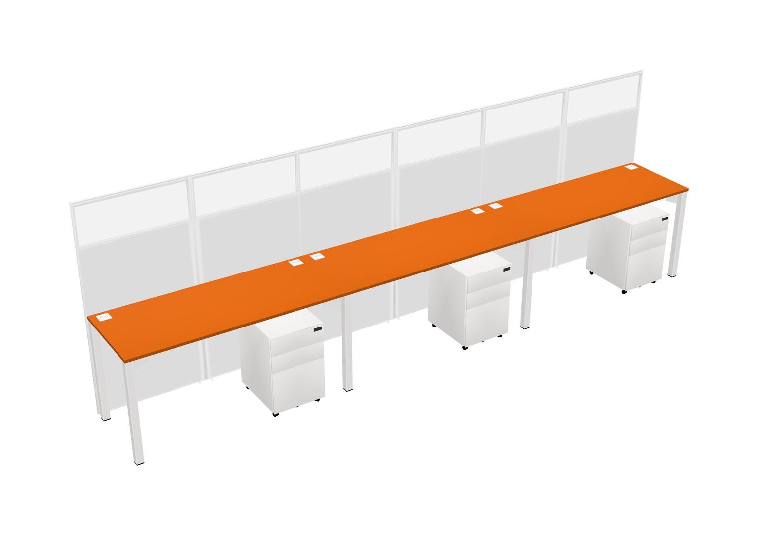 Orange Shared Rectangular Office Cubicle Panel System With Mobile Drawers For 3 Persons