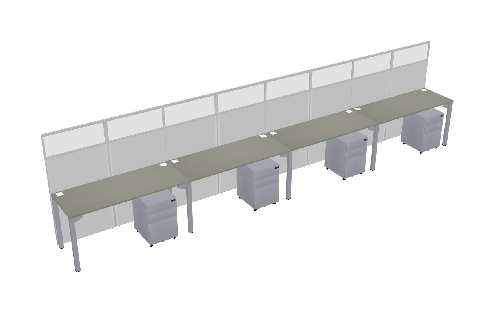 Grey Shadows Shared Rectangular Office Cubicle Panel System With Mobile Drawers For 4 Persons