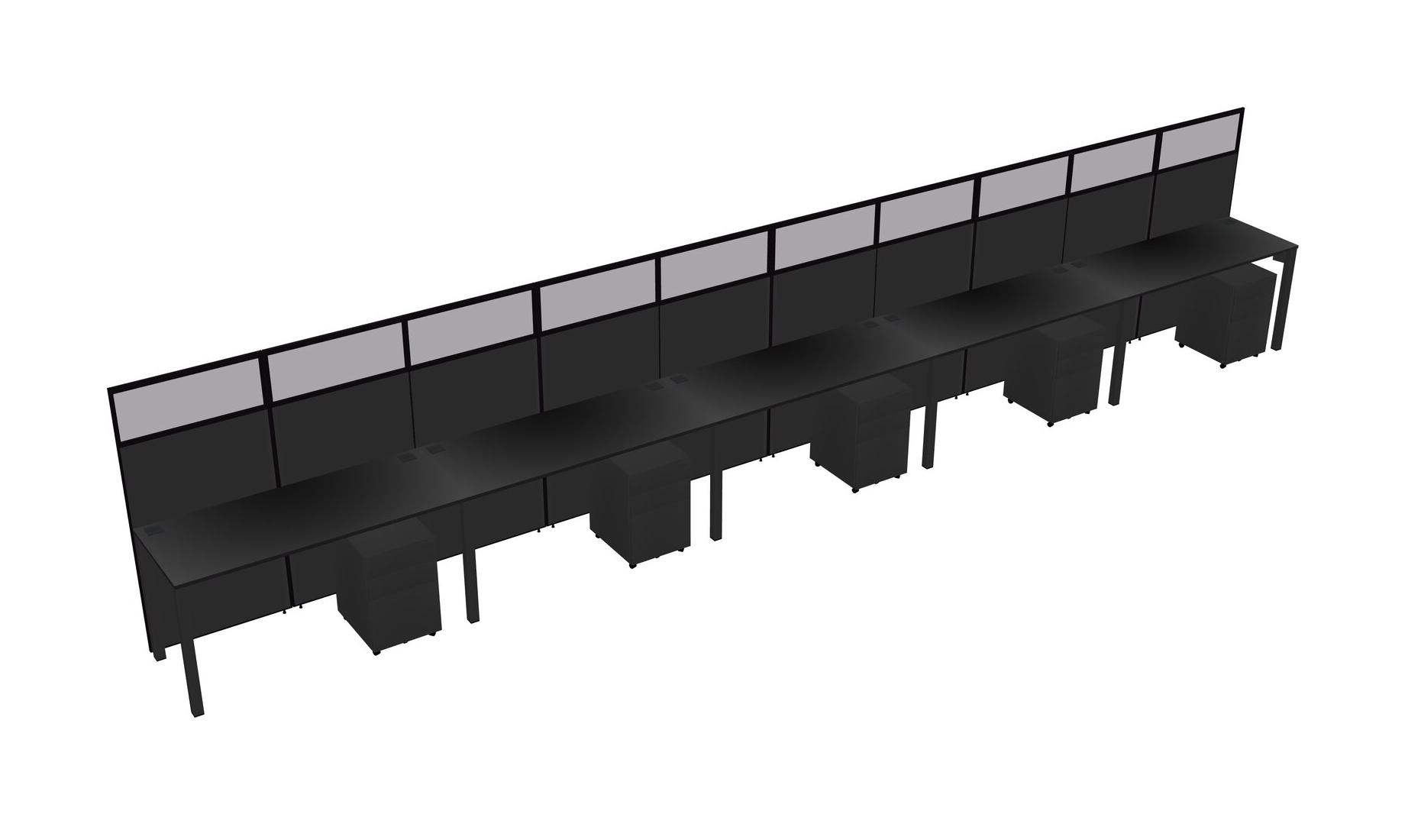 Black Shared Rectangular Office Cubicle Panel System With Mobile Drawers For 5 Persons