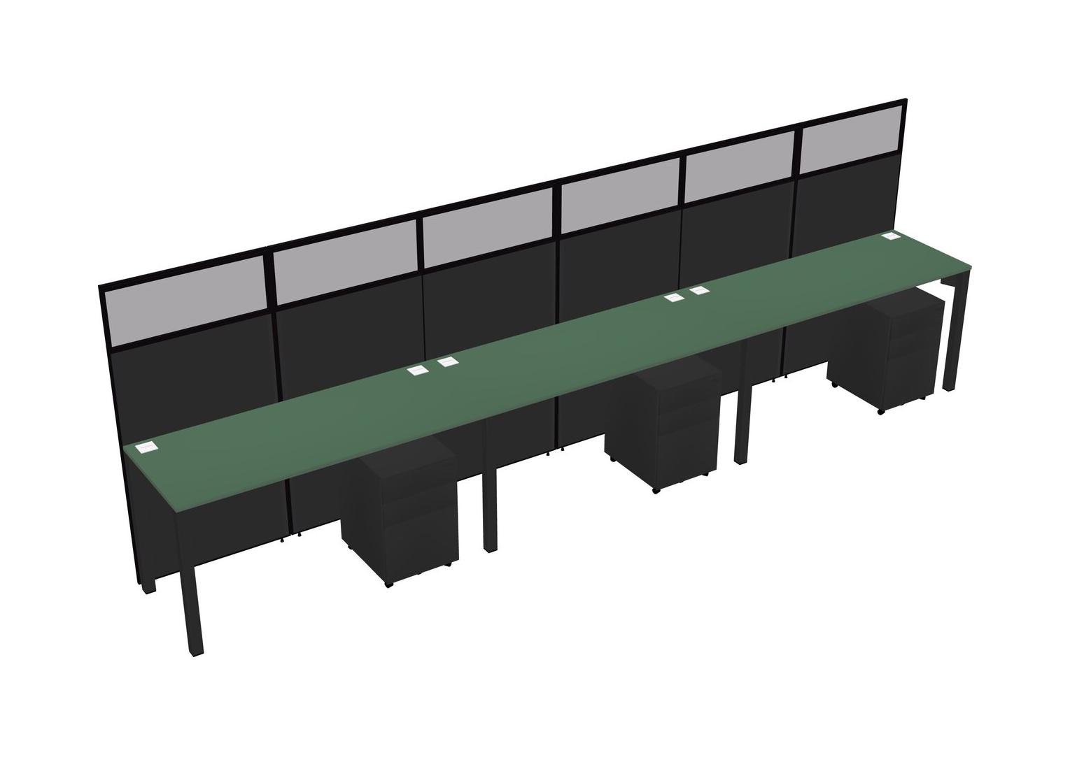 Green Shared Rectangular Office Cubicle Panel System With Mobile Drawers For 3 Persons