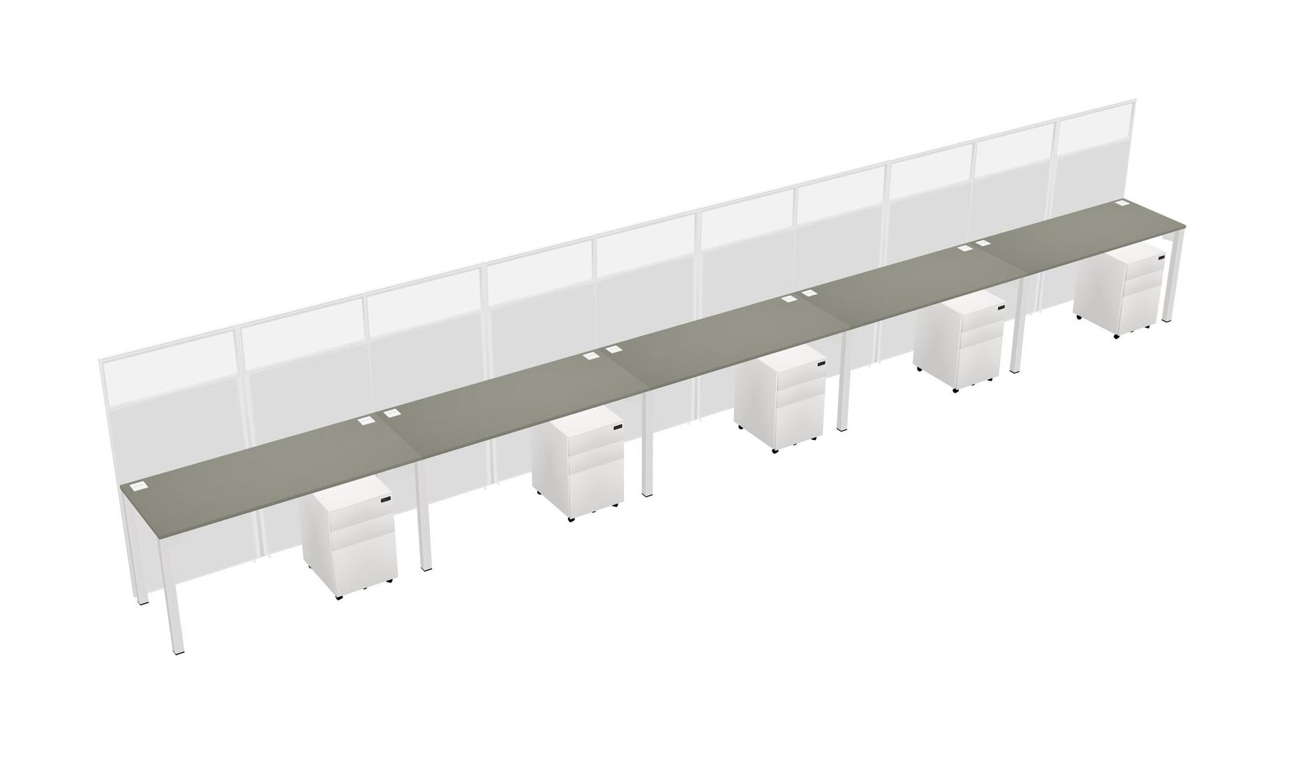 Grey Shadows Shared Rectangular Office Cubicle Panel System With Mobile Drawers For 5 Persons