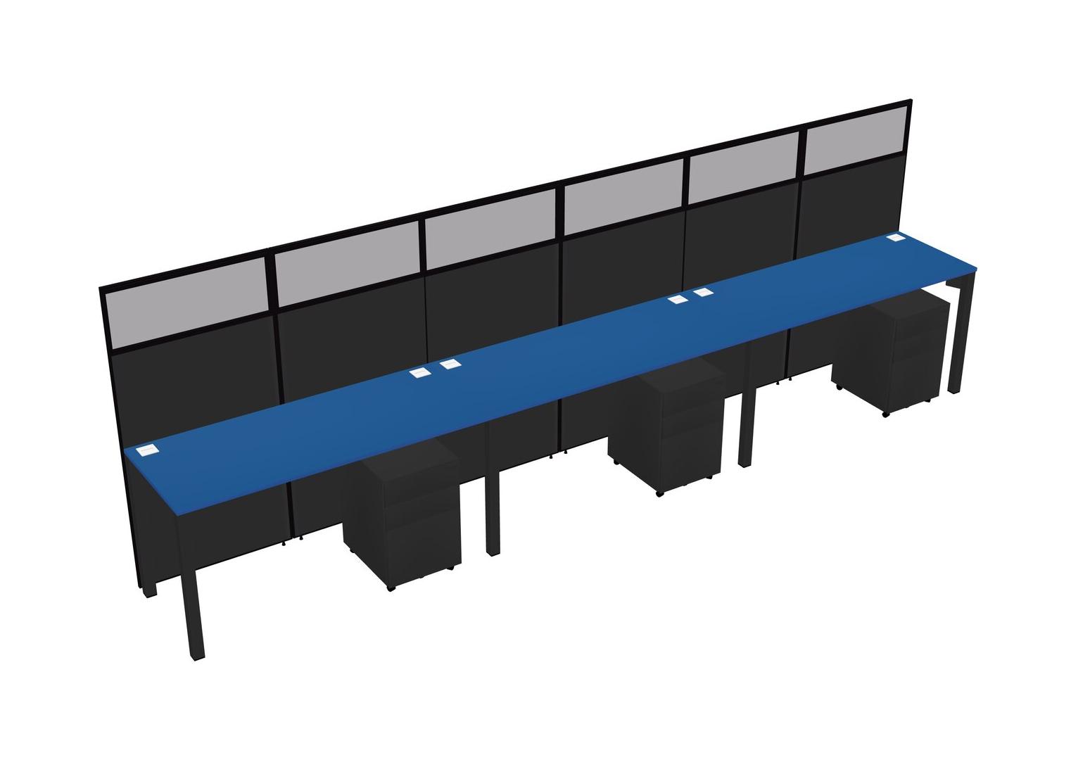 Prism Blue Shared Rectangular Office Cubicle Panel System With Mobile Drawers For 3 Persons