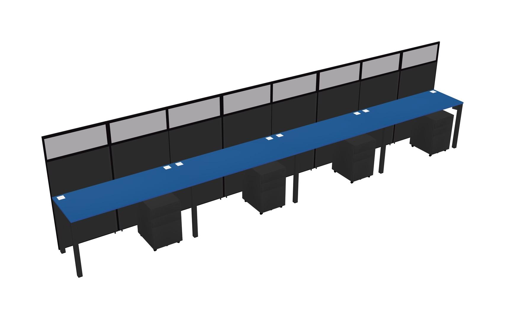Prism Blue Shared Rectangular Office Cubicle Panel System With Mobile Drawers For 4 Persons