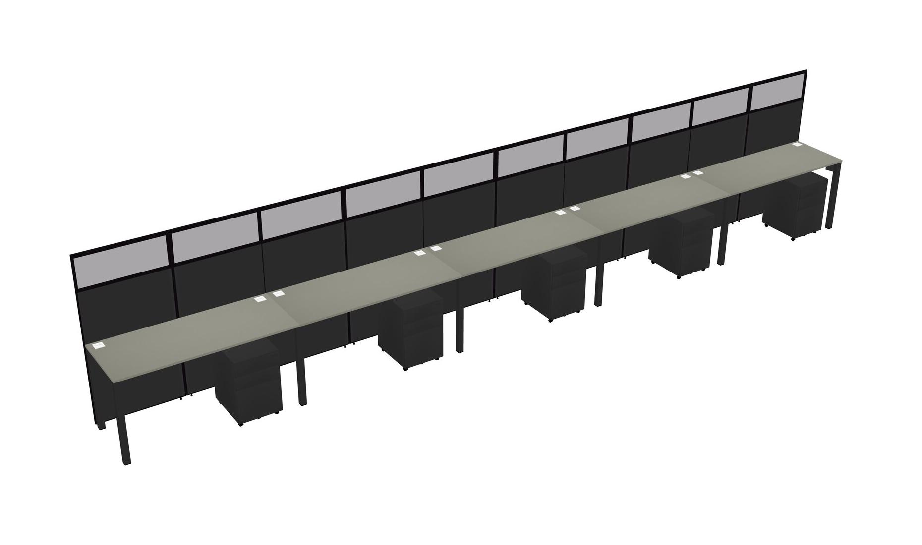 Grey Shadows Shared Rectangular Office Cubicle Panel System With Mobile Drawers For 5 Persons