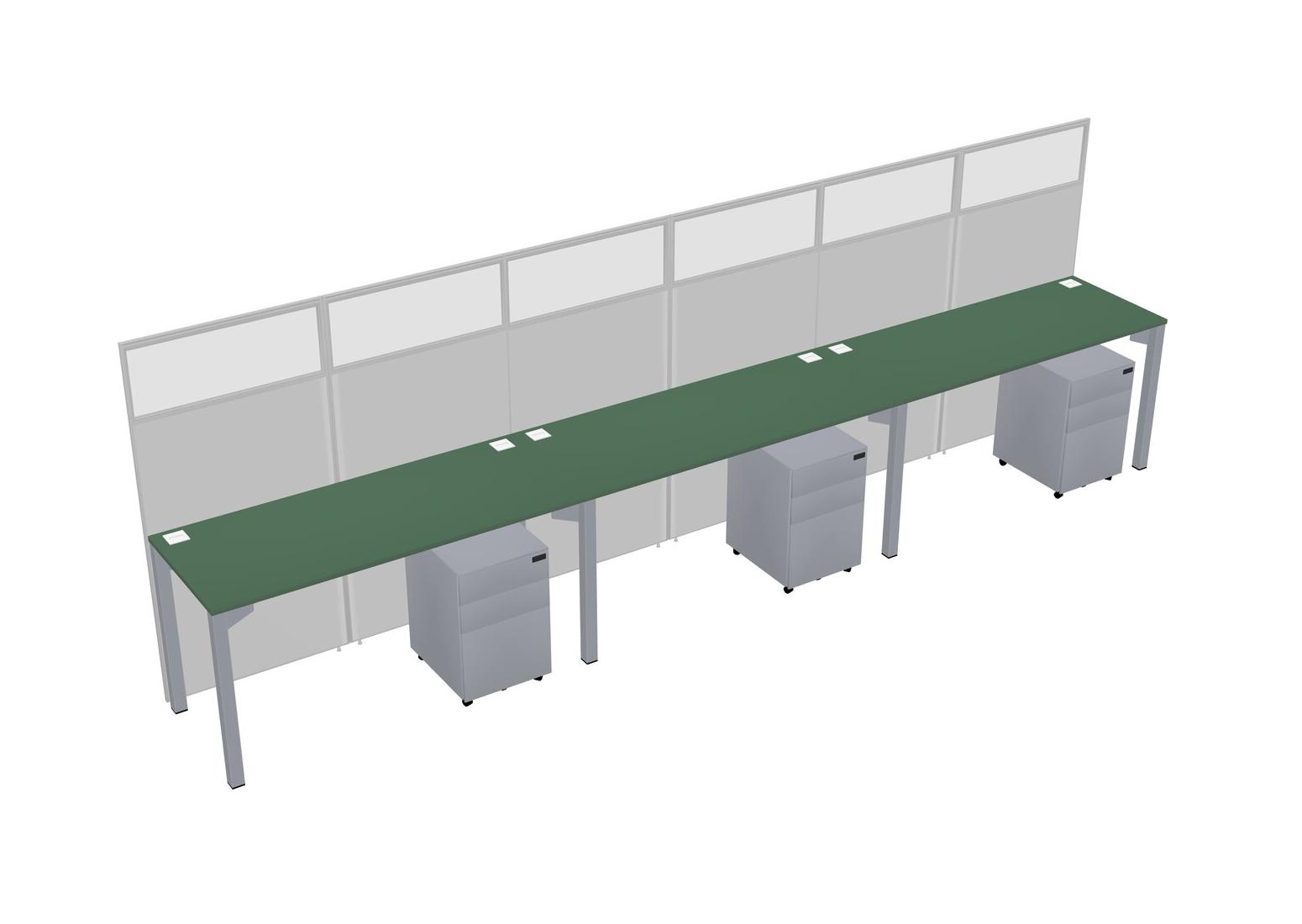 Green Shared Rectangular Office Cubicle Panel System With Mobile Drawers For 3 Persons