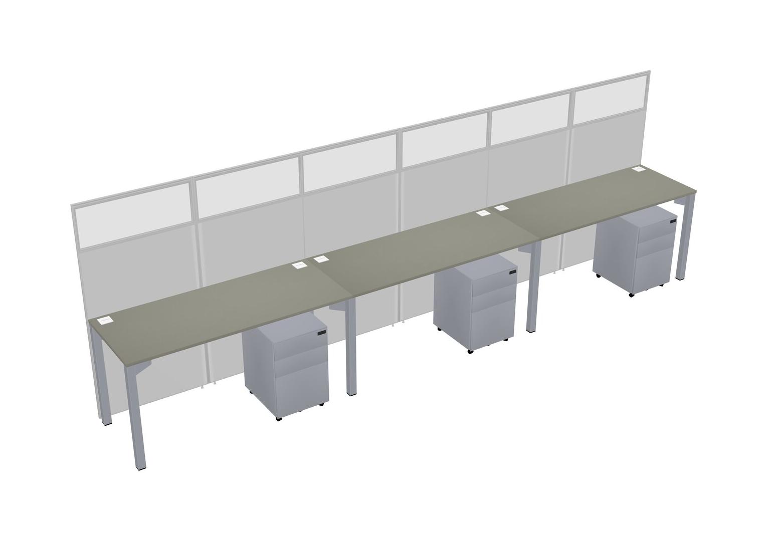Grey Shadows Shared Rectangular Office Cubicle Panel System With Mobile Drawers For 3 Persons