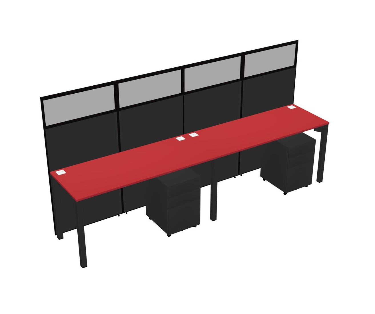 Prism Red Shared Rectangular Office Cubicle Panel System With Mobile Drawers For 2 Persons