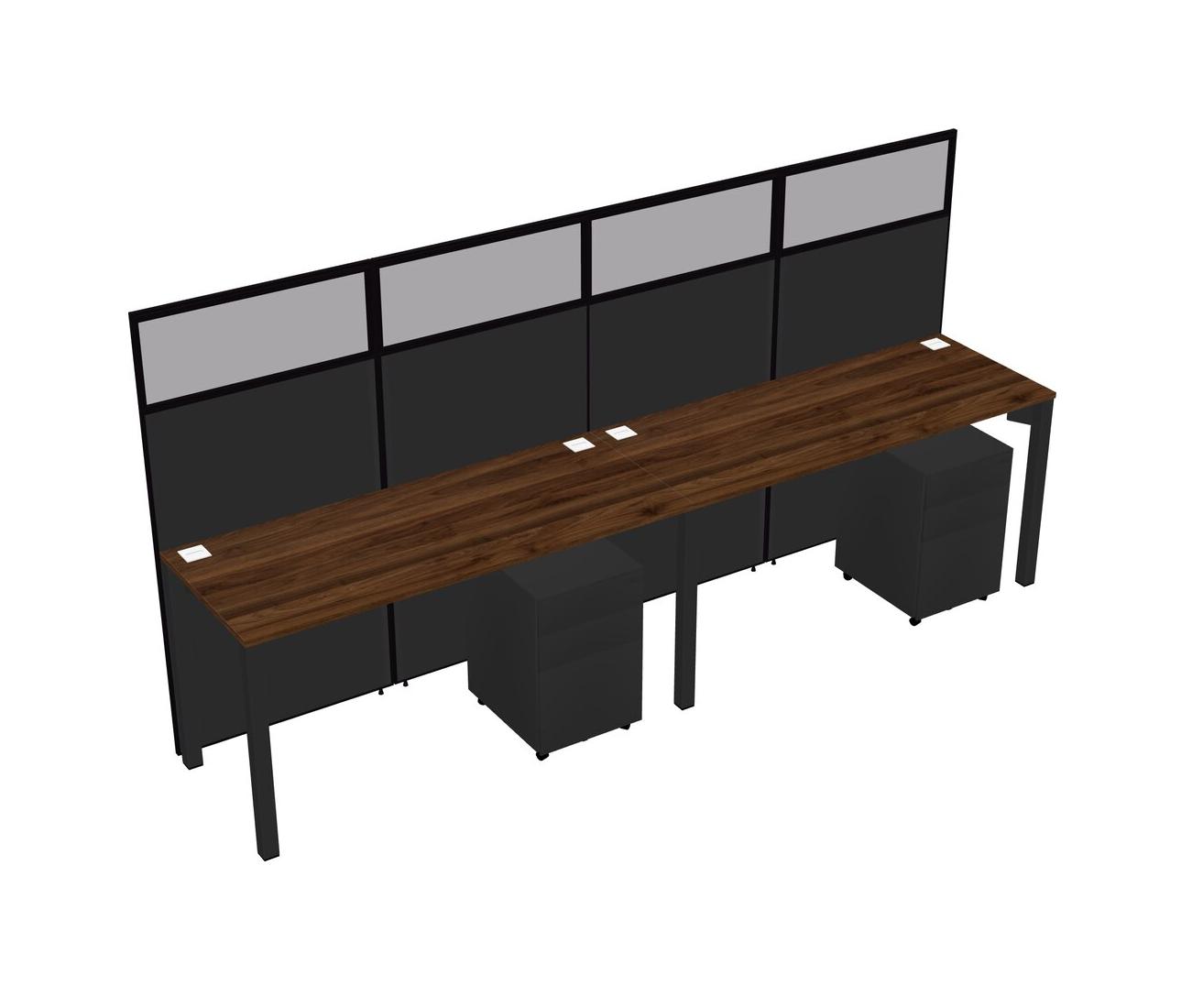 Columbia Walnut Shared Rectangular Office Cubicle Panel System With Mobile Drawers For 2 Persons