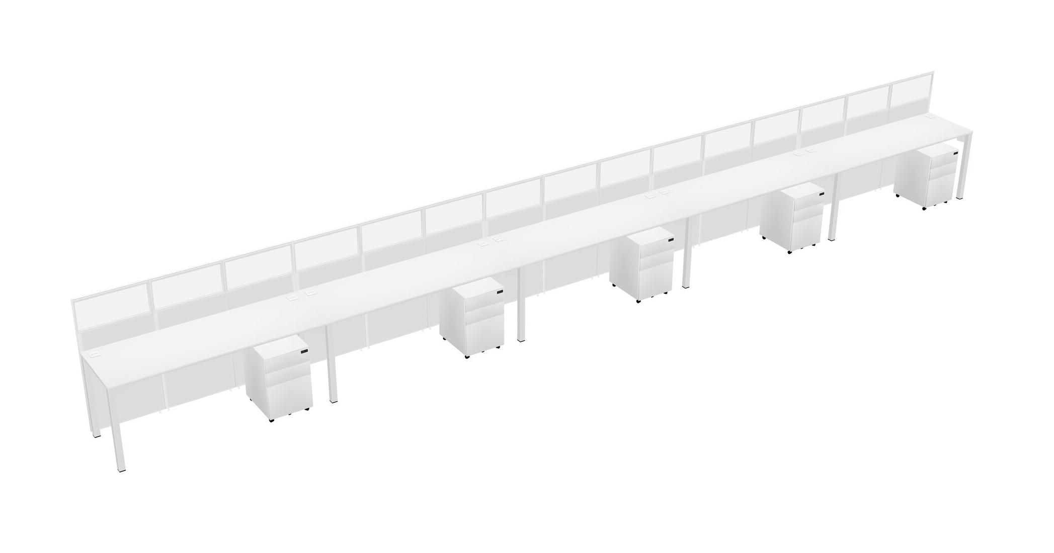 White Shared Rectangular Office Cubicle Panel System With Mobile Drawers For 5 Persons