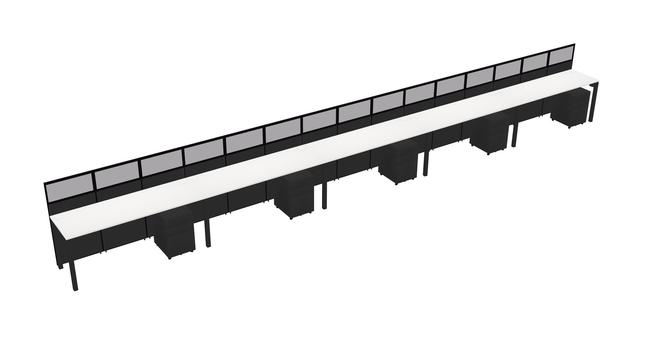 White Shared Rectangular Office Cubicle Panel System With Mobile Drawers For 5 Persons