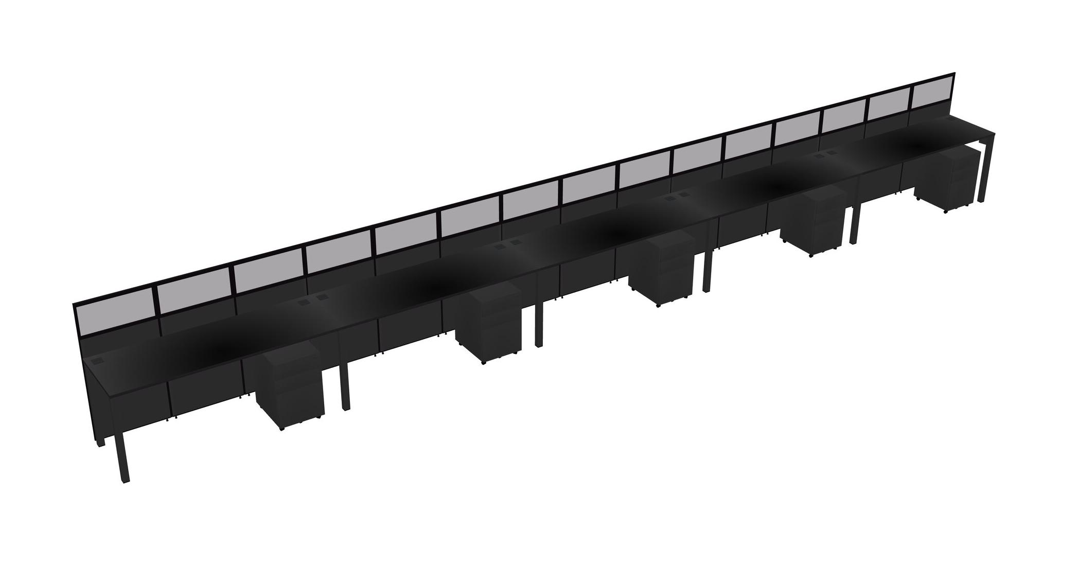 Black Shared Rectangular Office Cubicle Panel System With Mobile Drawers For 5 Persons