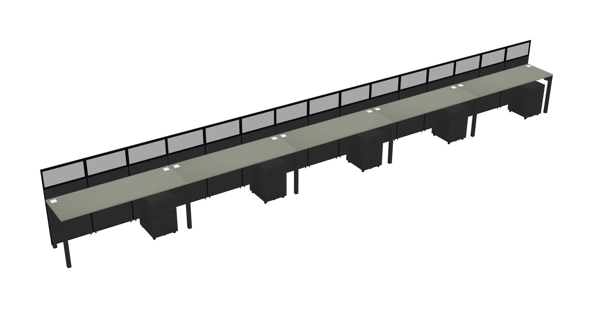 Grey Shadows Shared Rectangular Office Cubicle Panel System With Mobile Drawers For 5 Persons