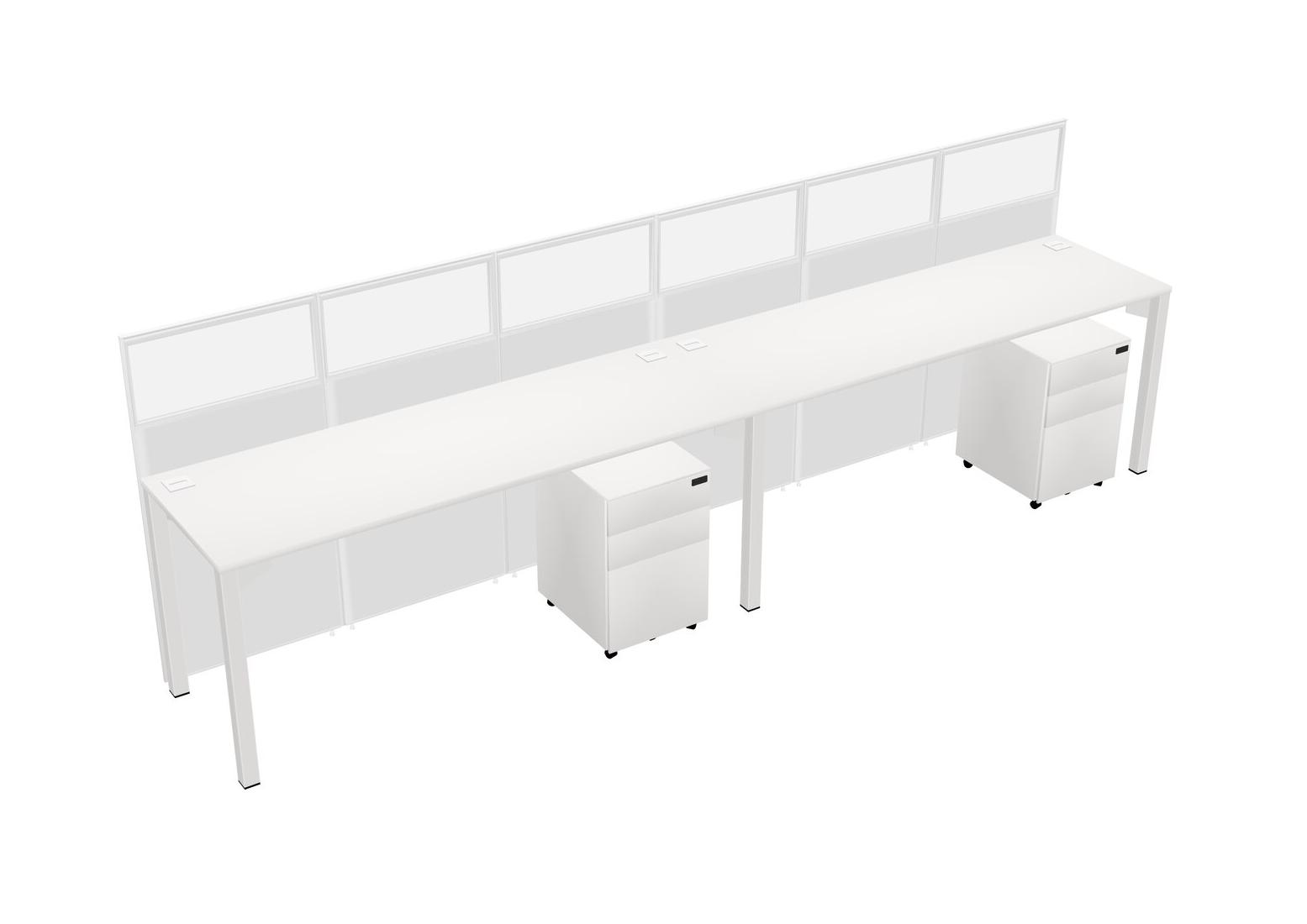 White Shared Rectangular Office Cubicle Panel System With Mobile Drawers For 2 Persons