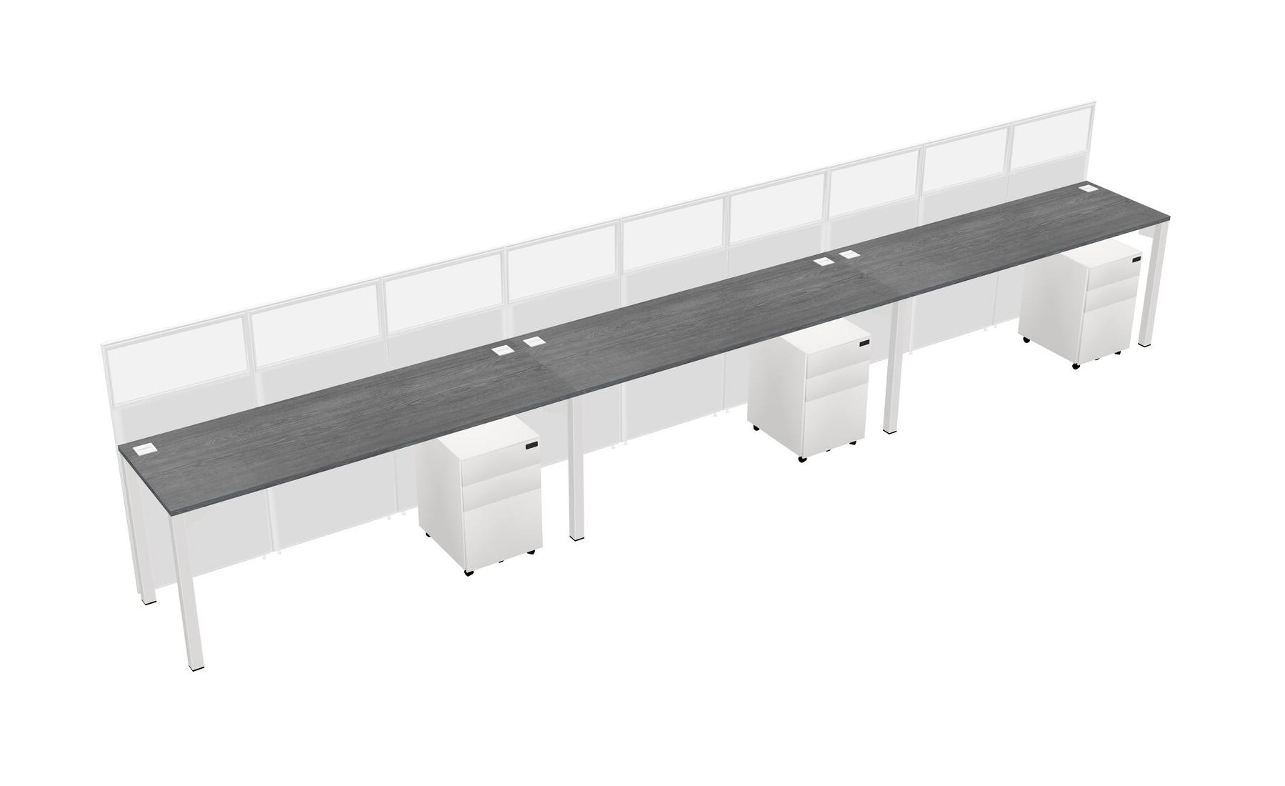 Grey Shared Rectangular Office Cubicle Panel System With Mobile Drawers For 3 Persons