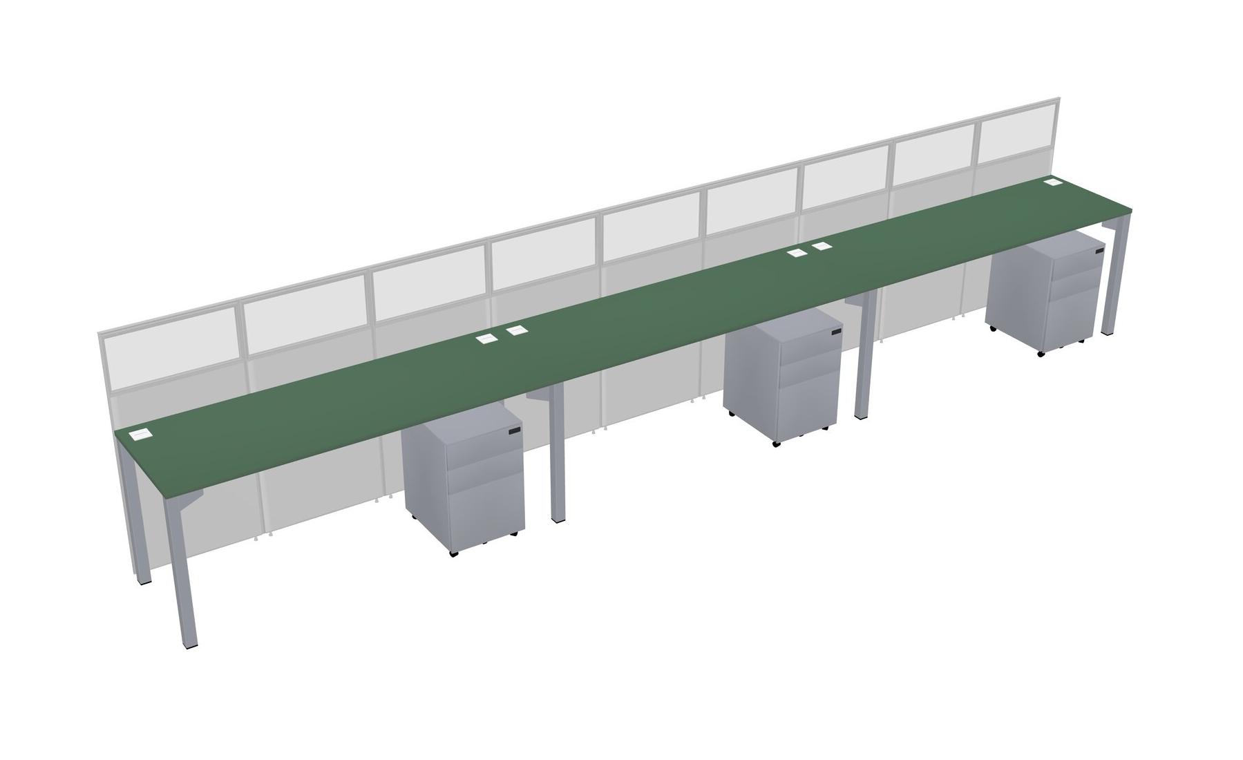 Green Shared Rectangular Office Cubicle Panel System With Mobile Drawers For 3 Persons
