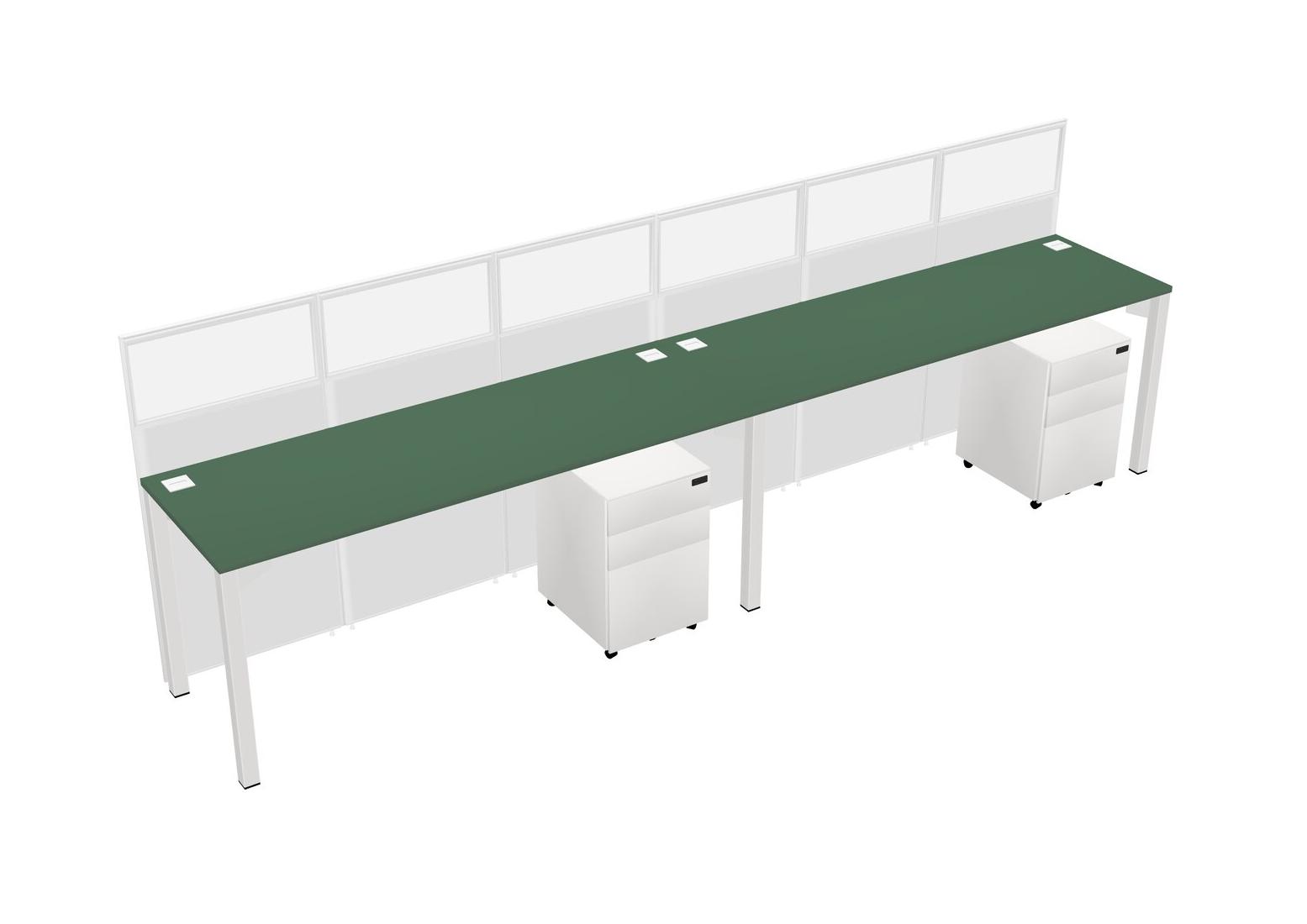 Green Shared Rectangular Office Cubicle Panel System With Mobile Drawers For 2 Persons