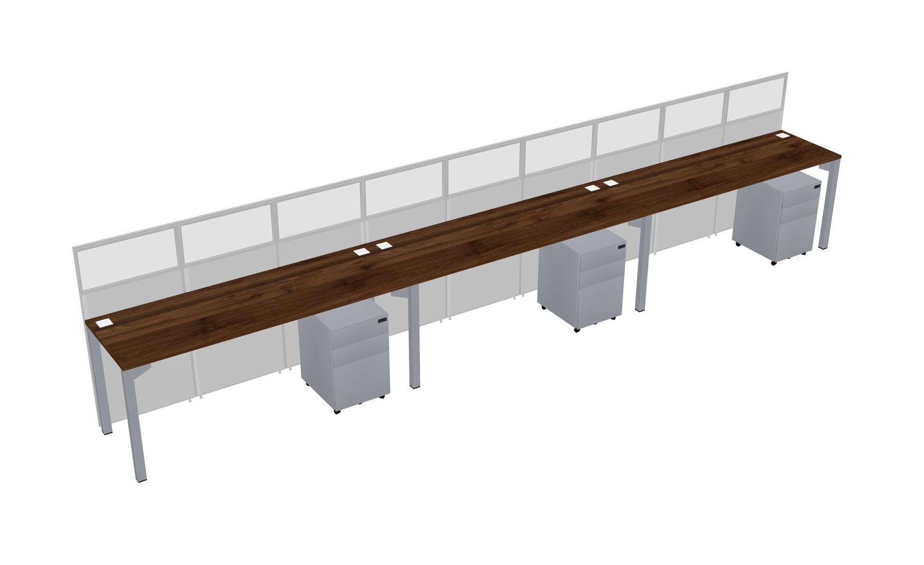 Columbia Walnut Shared Rectangular Office Cubicle Panel System With Mobile Drawers For 3 Persons