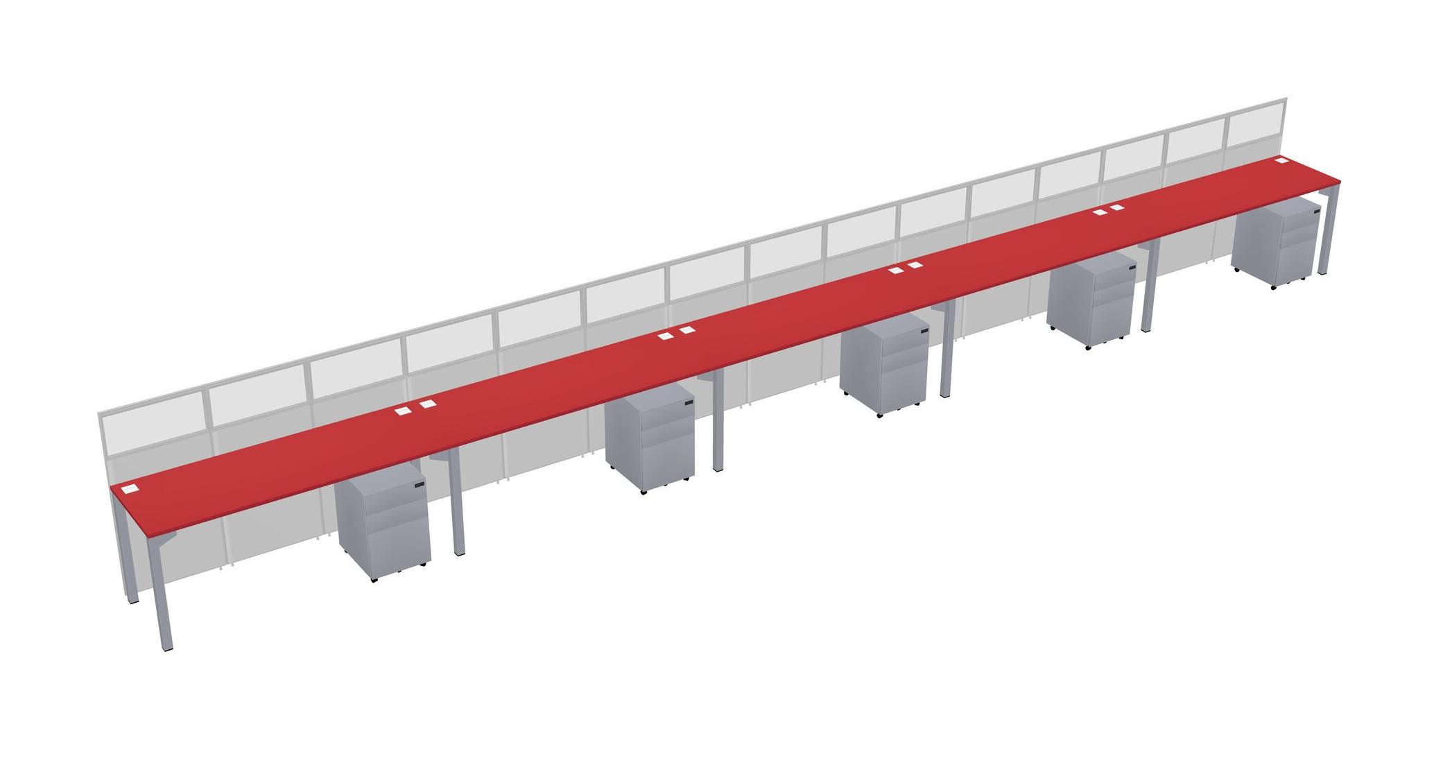 Prism Red Shared Rectangular Office Cubicle Panel System With Mobile Drawers For 5 Persons