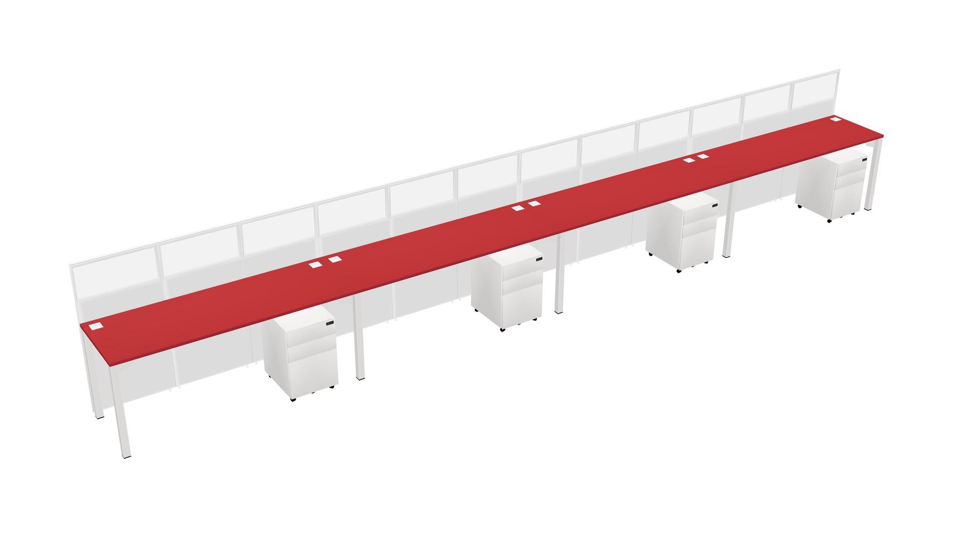 Prism Red Shared Rectangular Office Cubicle Panel System With Mobile Drawers For 4 Persons