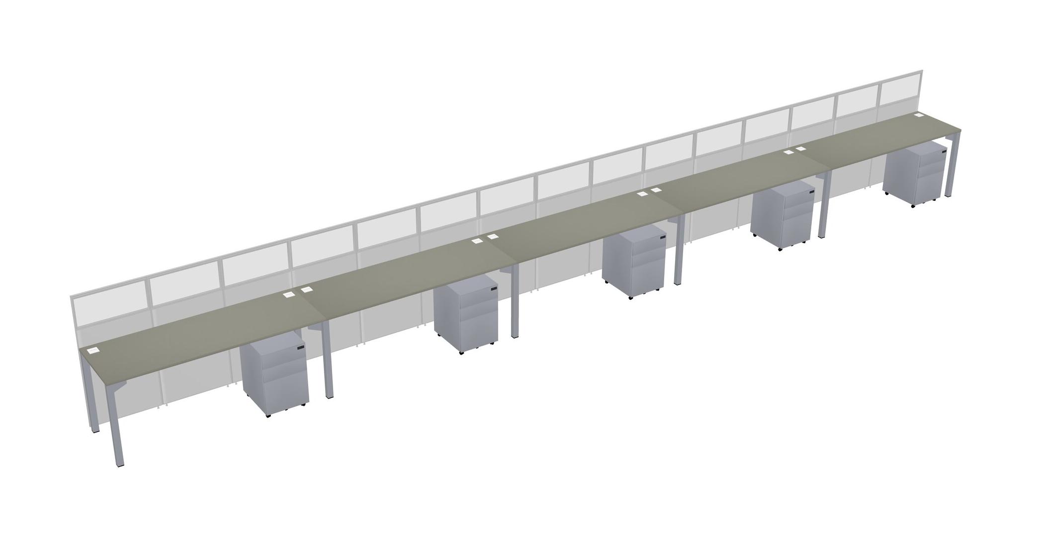 Grey Shadows Shared Rectangular Office Cubicle Panel System With Mobile Drawers For 5 Persons