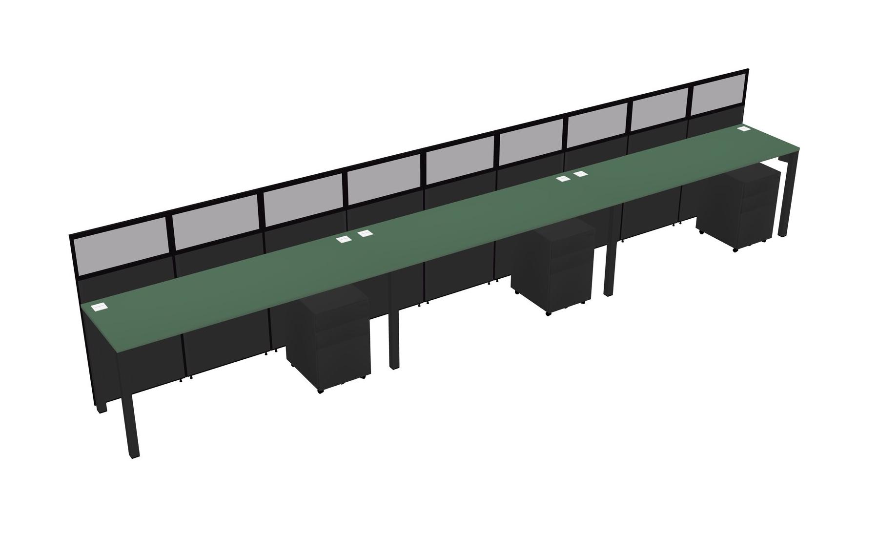 Green Shared Rectangular Office Cubicle Panel System With Mobile Drawers For 3 Persons