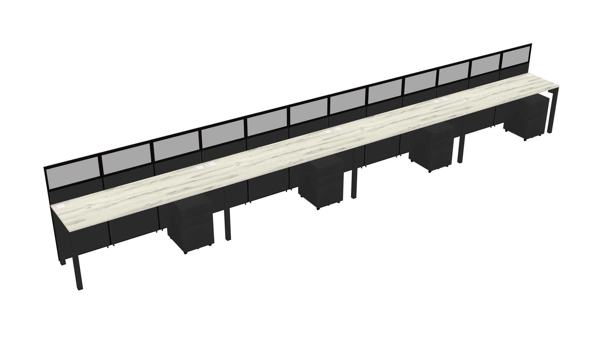 Heinne Holz Shared Rectangular Office Cubicle Panel System With Mobile Drawers For 4 Persons