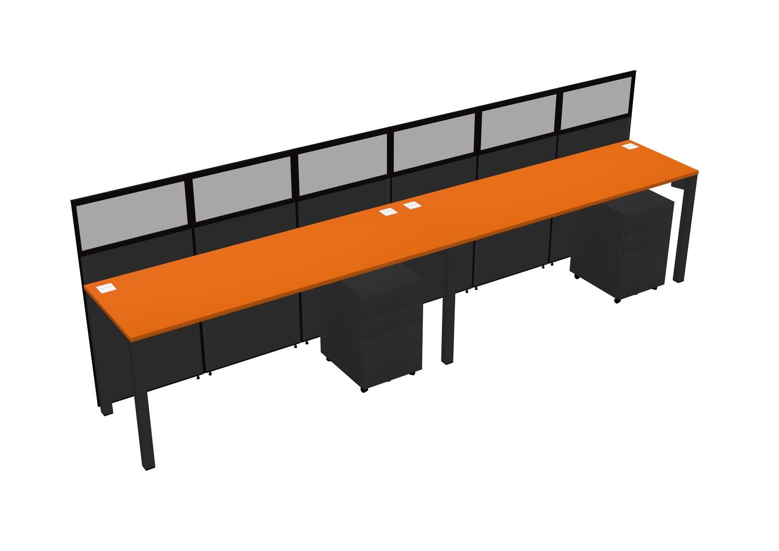 Orange Shared Rectangular Office Cubicle Panel System With Mobile Drawers For 2 Persons