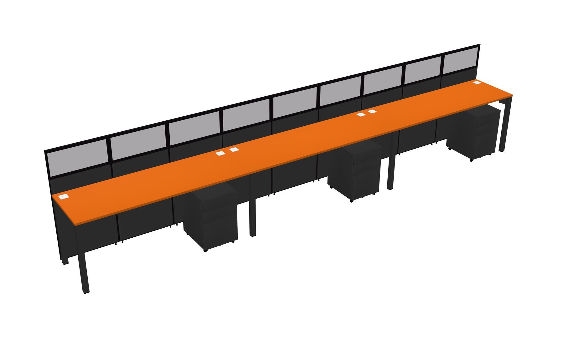 Orange Shared Rectangular Office Cubicle Panel System With Mobile Drawers For 3 Persons