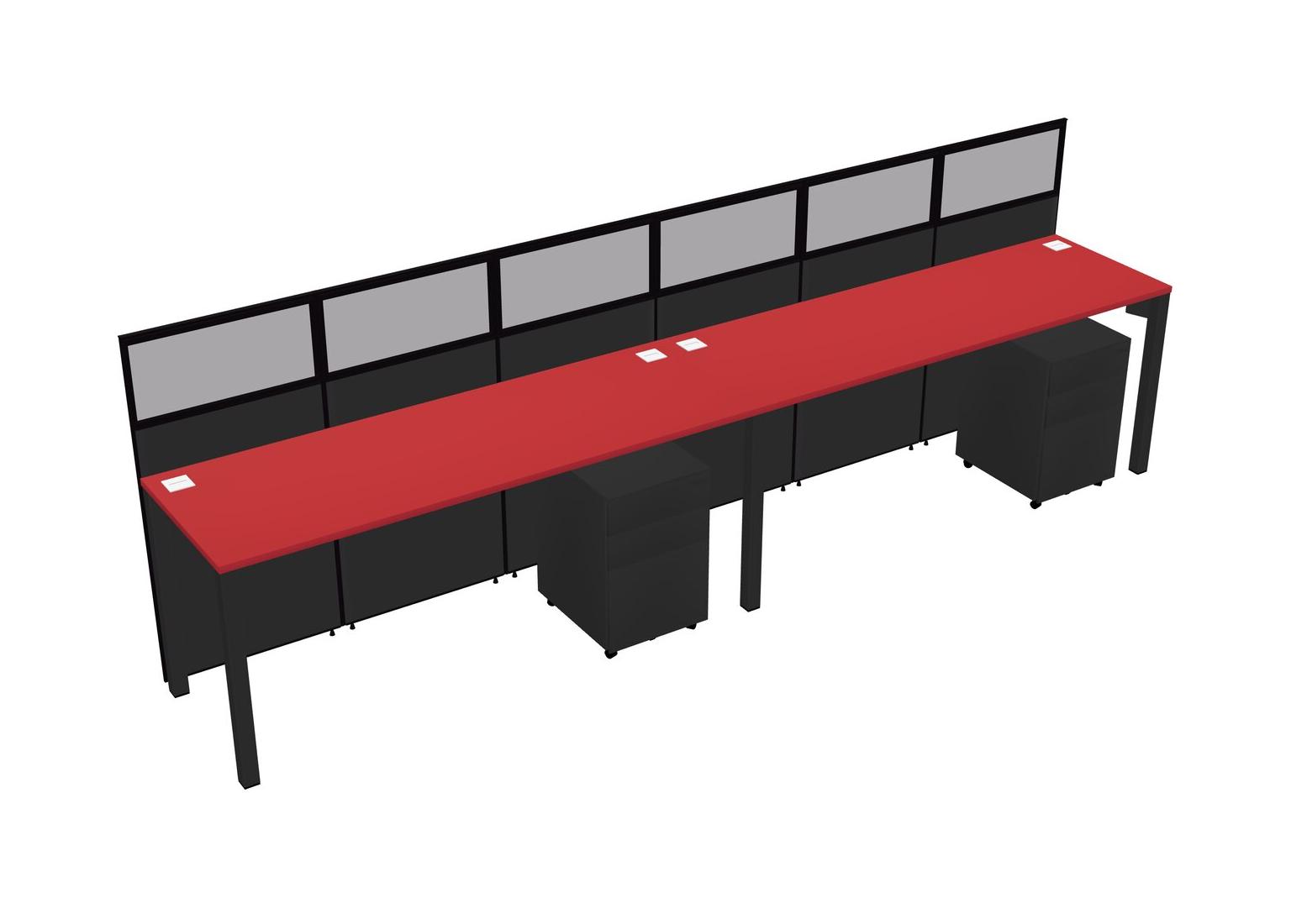 Prism Red Shared Rectangular Office Cubicle Panel System With Mobile Drawers For 2 Persons