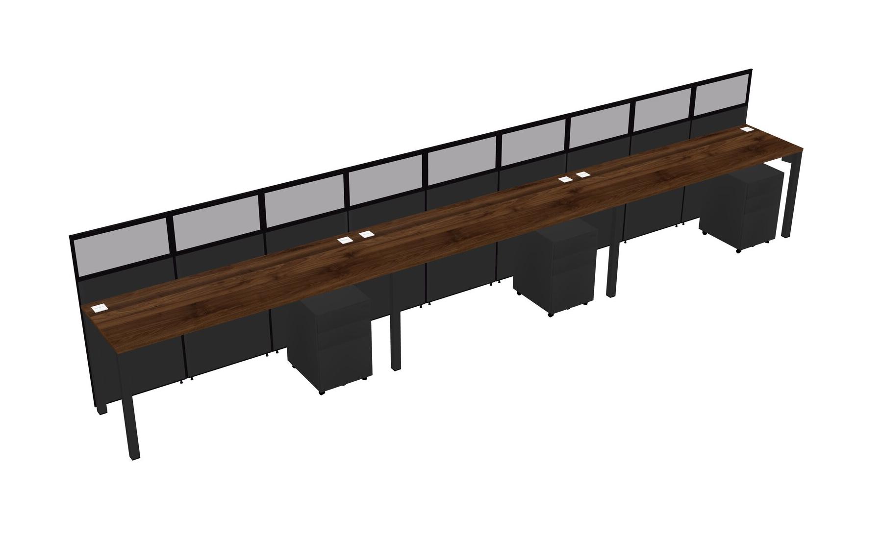 Columbia Walnut Shared Rectangular Office Cubicle Panel System With Mobile Drawers For 3 Persons