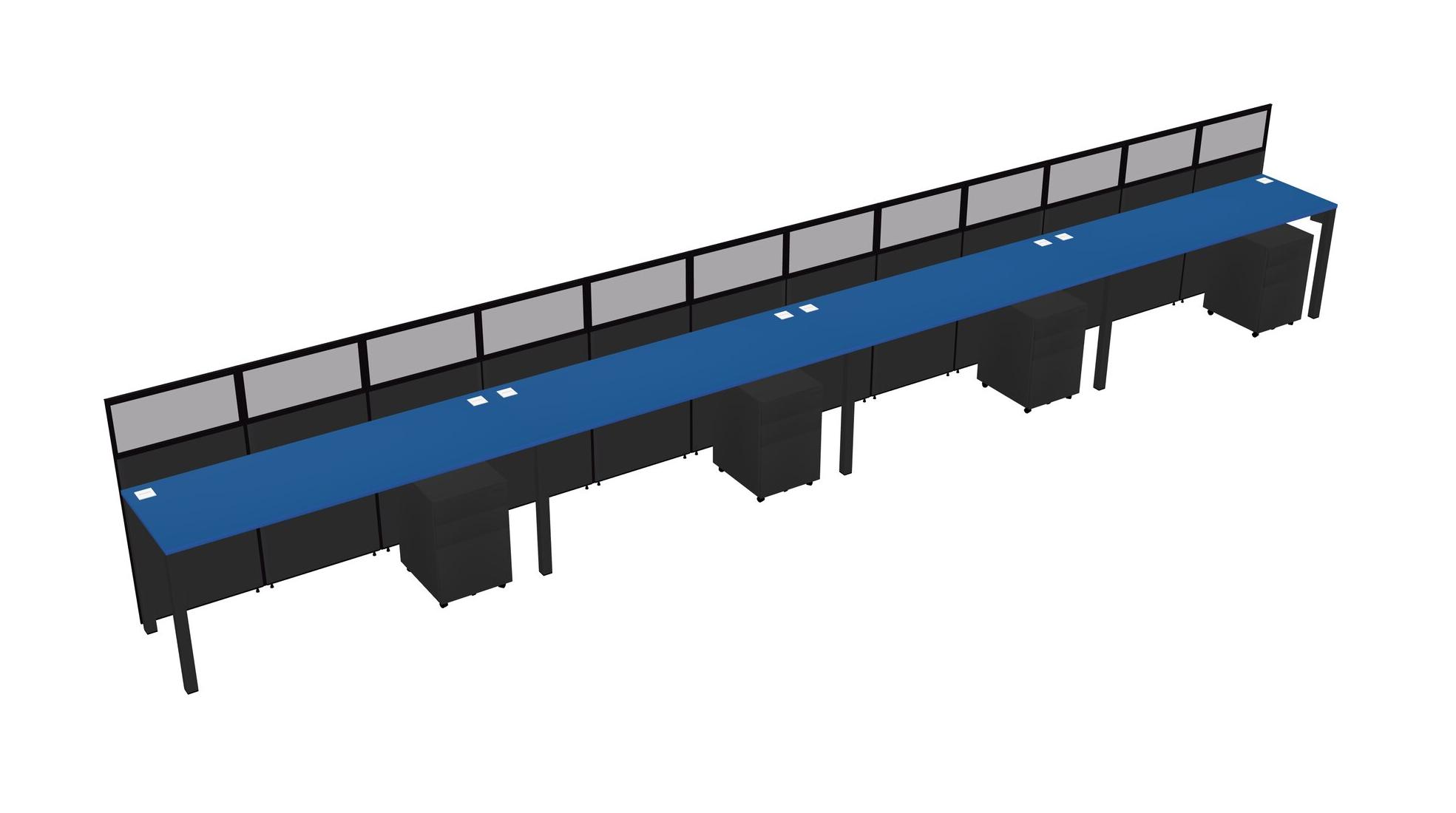 Prism Blue Shared Rectangular Office Cubicle Panel System With Mobile Drawers For 4 Persons