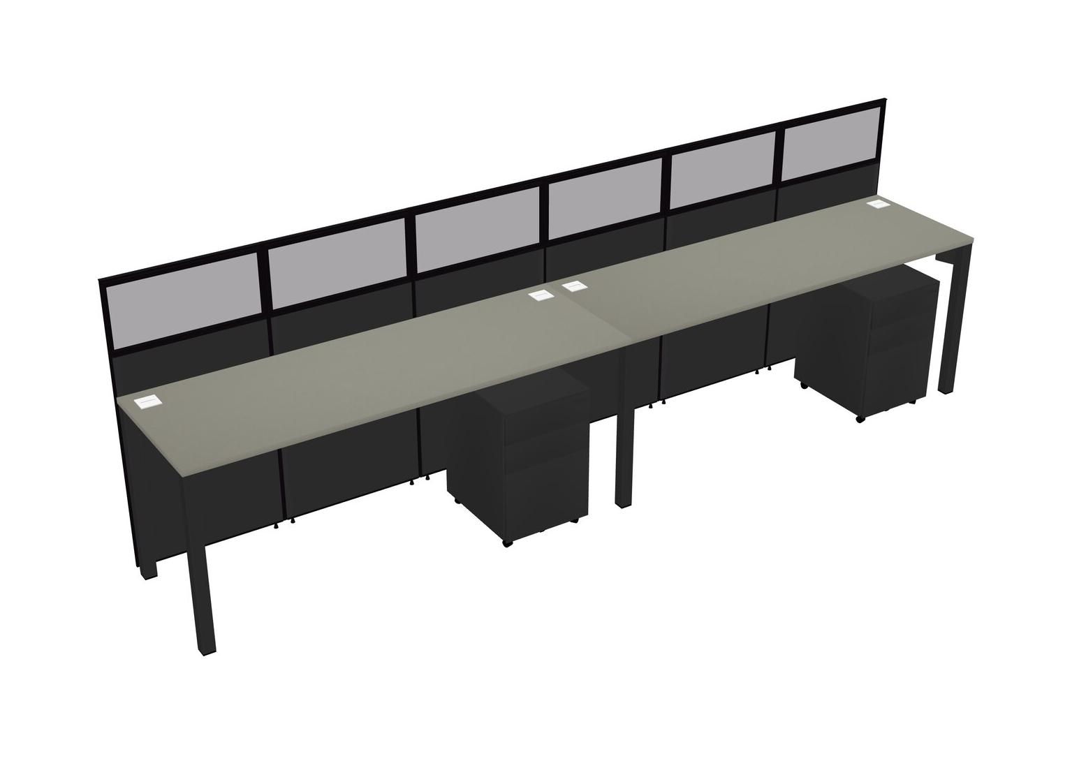 Grey Shadows Shared Rectangular Office Cubicle Panel System With Mobile Drawers For 2 Persons