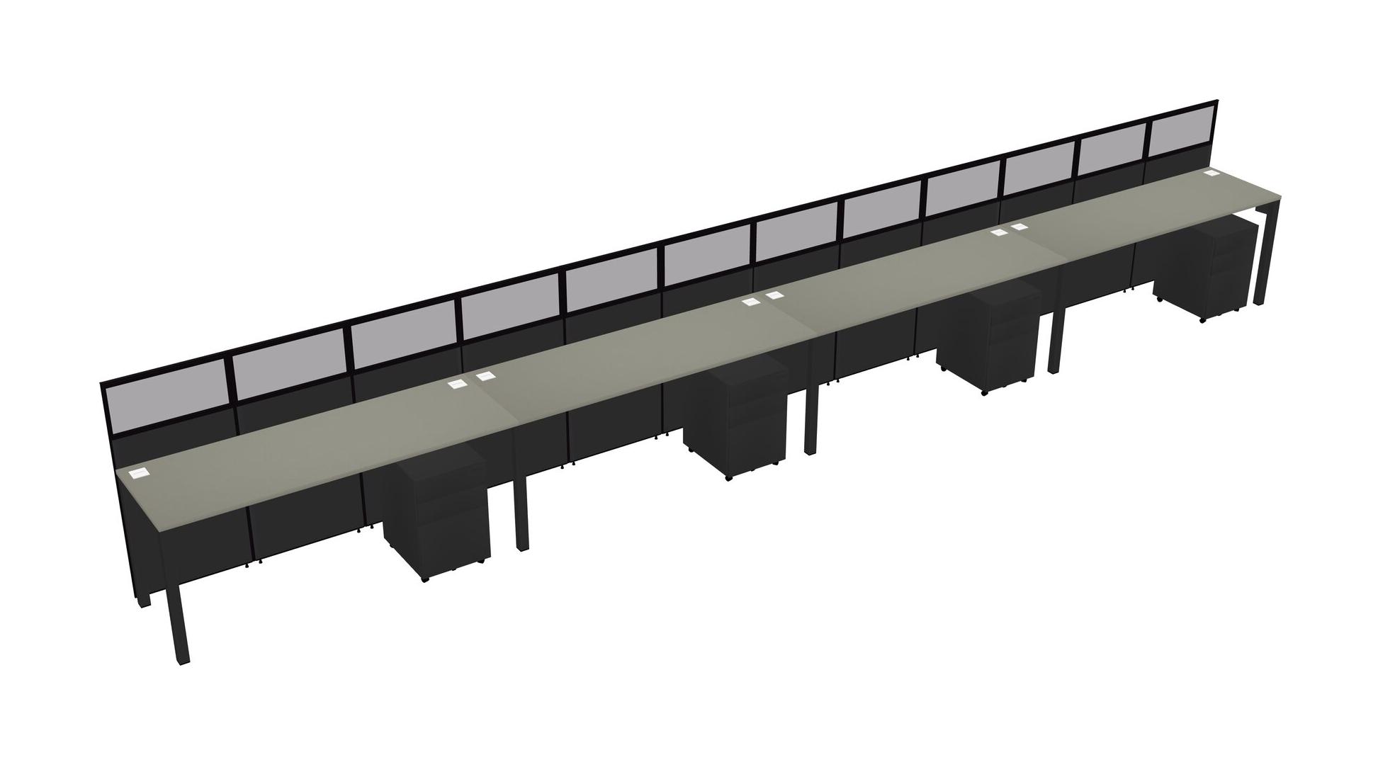 Grey Shadows Shared Rectangular Office Cubicle Panel System With Mobile Drawers For 4 Persons
