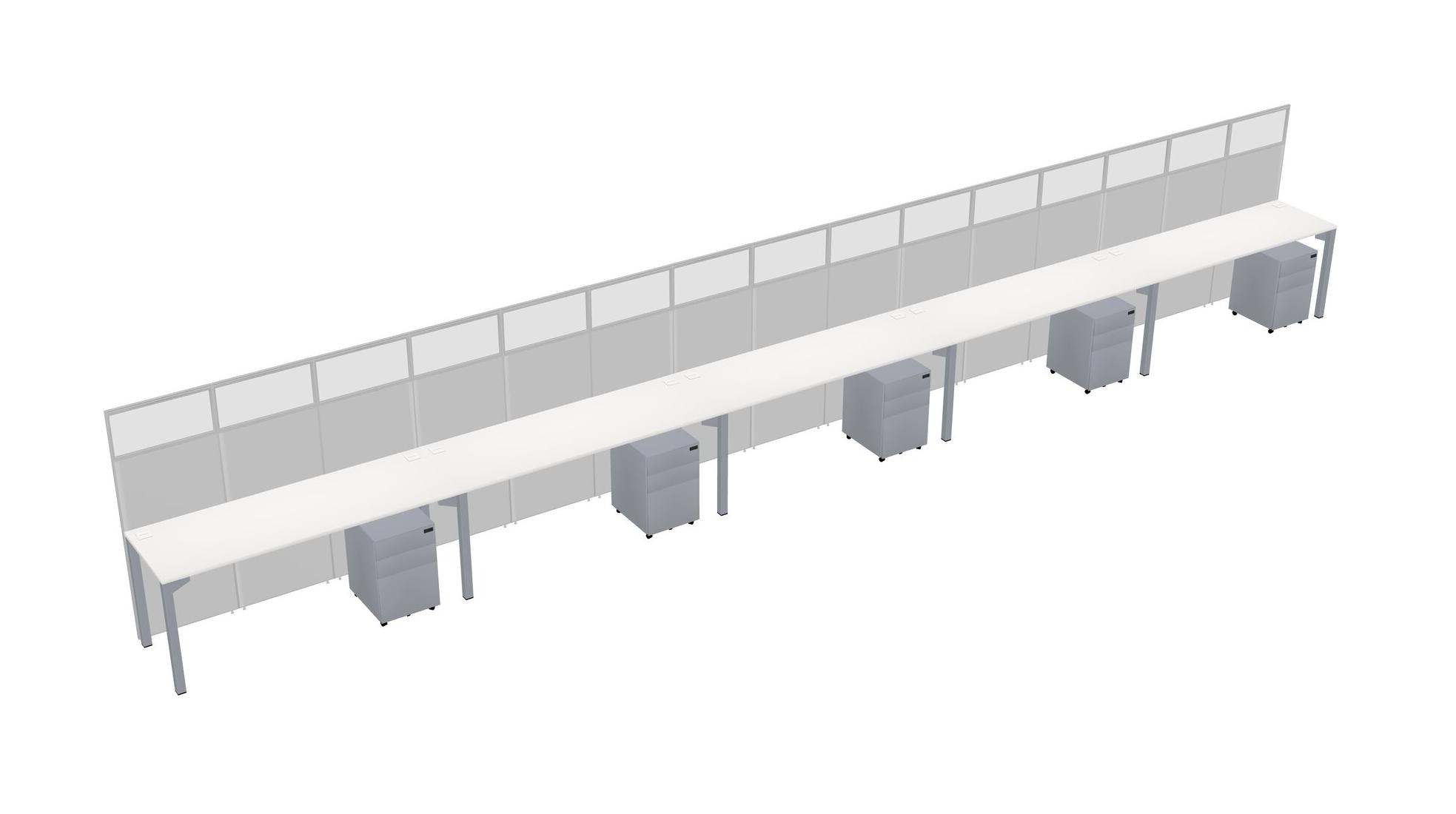 White Shared Rectangular Office Cubicle Panel System With Mobile Drawers For 5 Persons