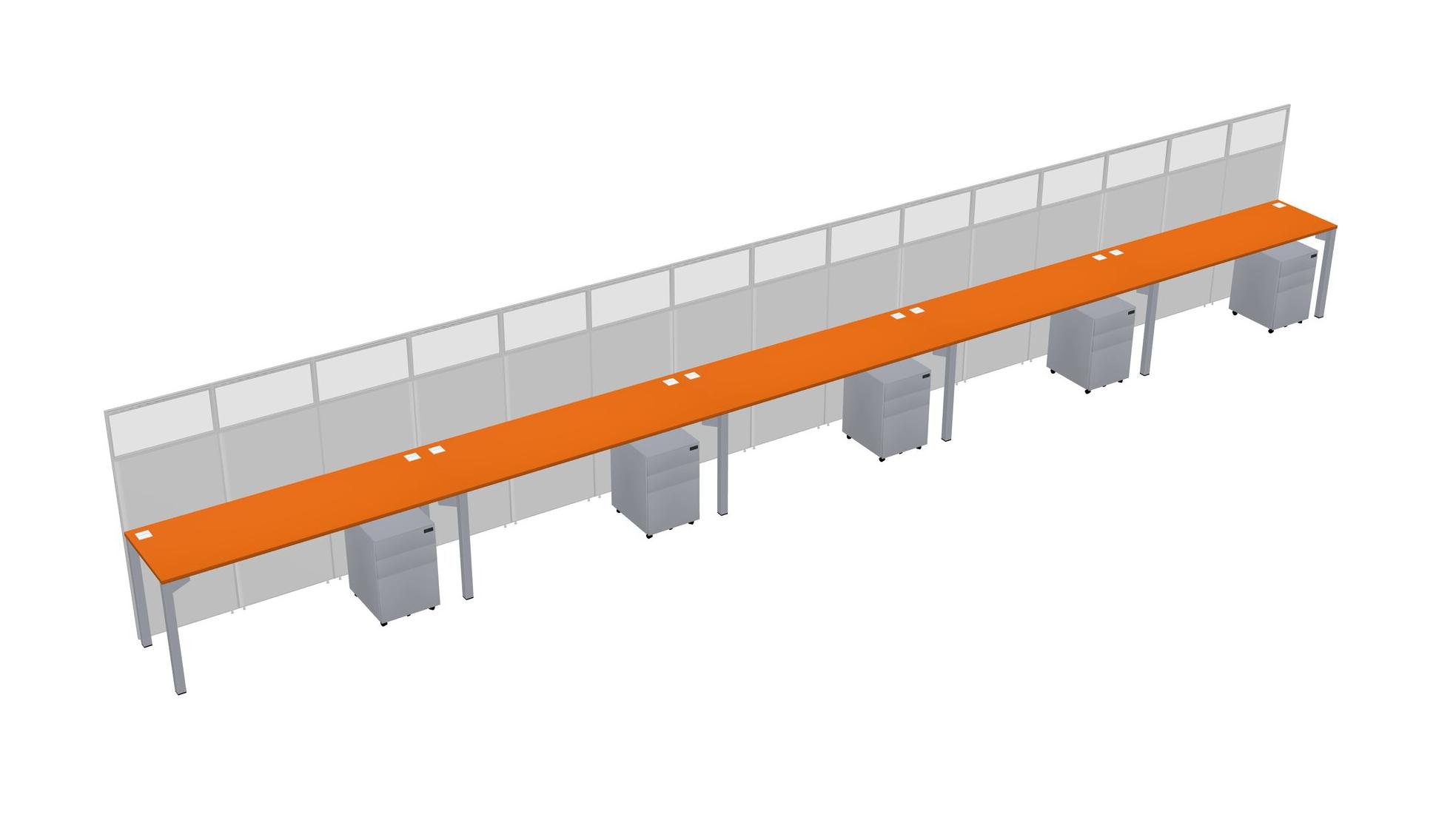 Orange Shared Rectangular Office Cubicle Panel System With Mobile Drawers For 5 Persons