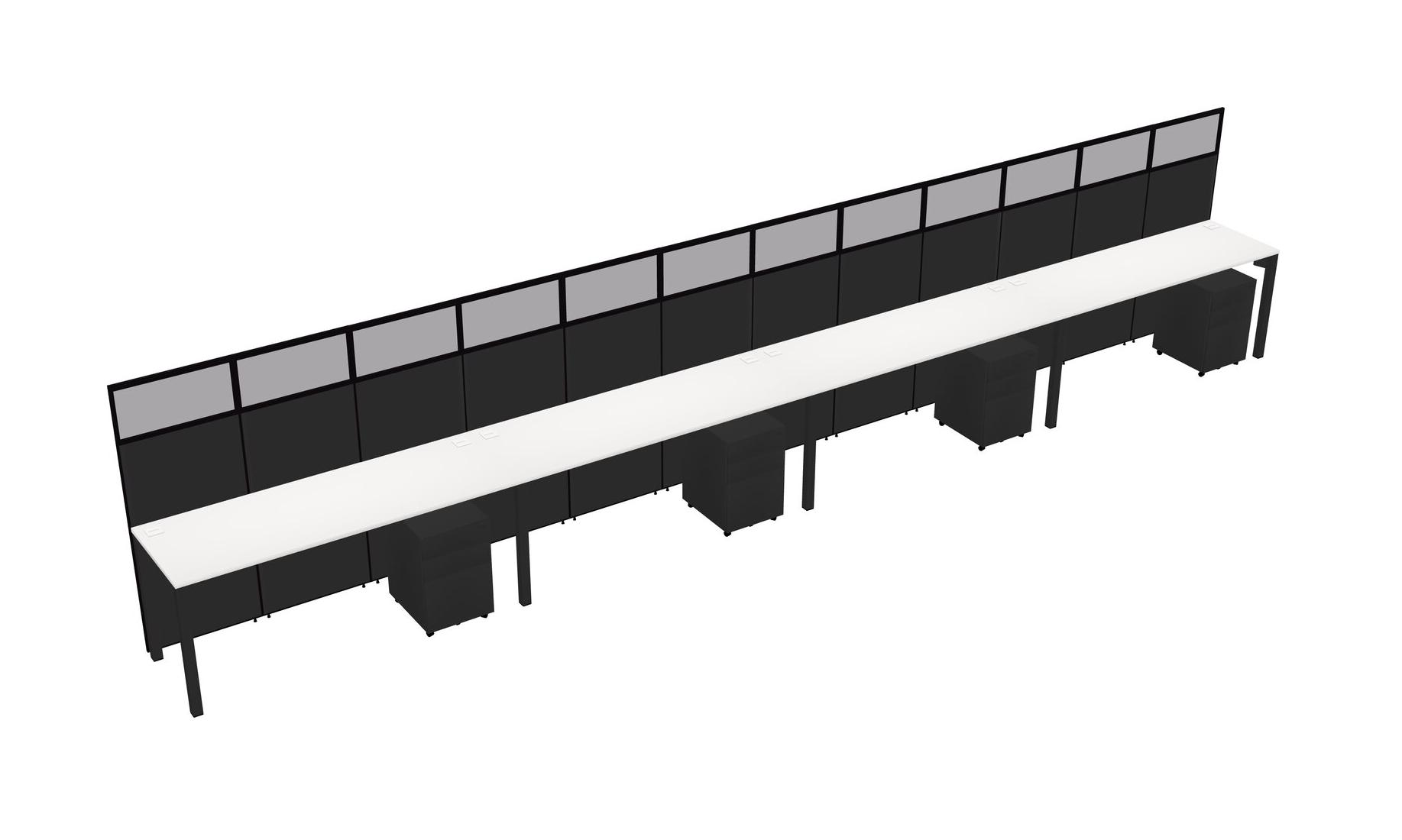 White Shared Rectangular Office Cubicle Panel System With Mobile Drawers For 4 Persons
