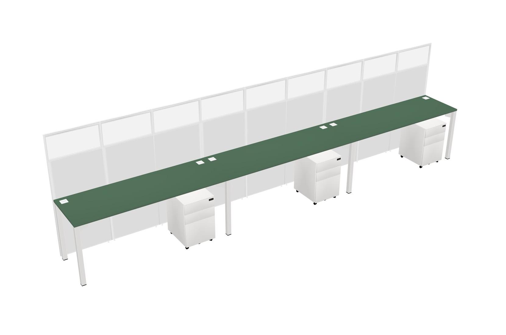 Green Shared Rectangular Office Cubicle Panel System With Mobile Drawers For 3 Persons