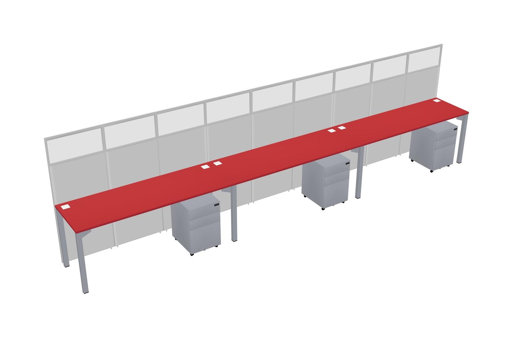 Prism Red Shared Rectangular Office Cubicle Panel System With Mobile Drawers For 3 Persons
