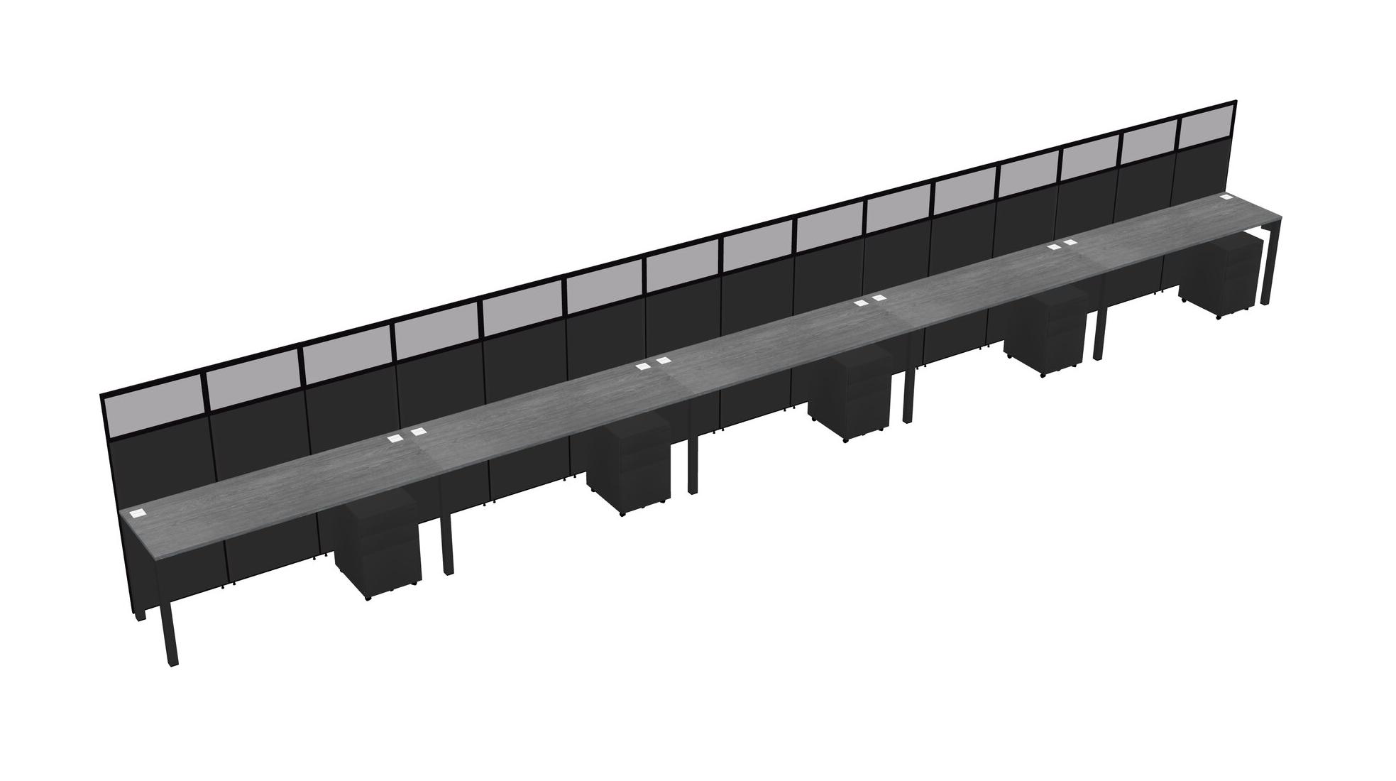 Grey Shared Rectangular Office Cubicle Panel System With Mobile Drawers For 5 Persons