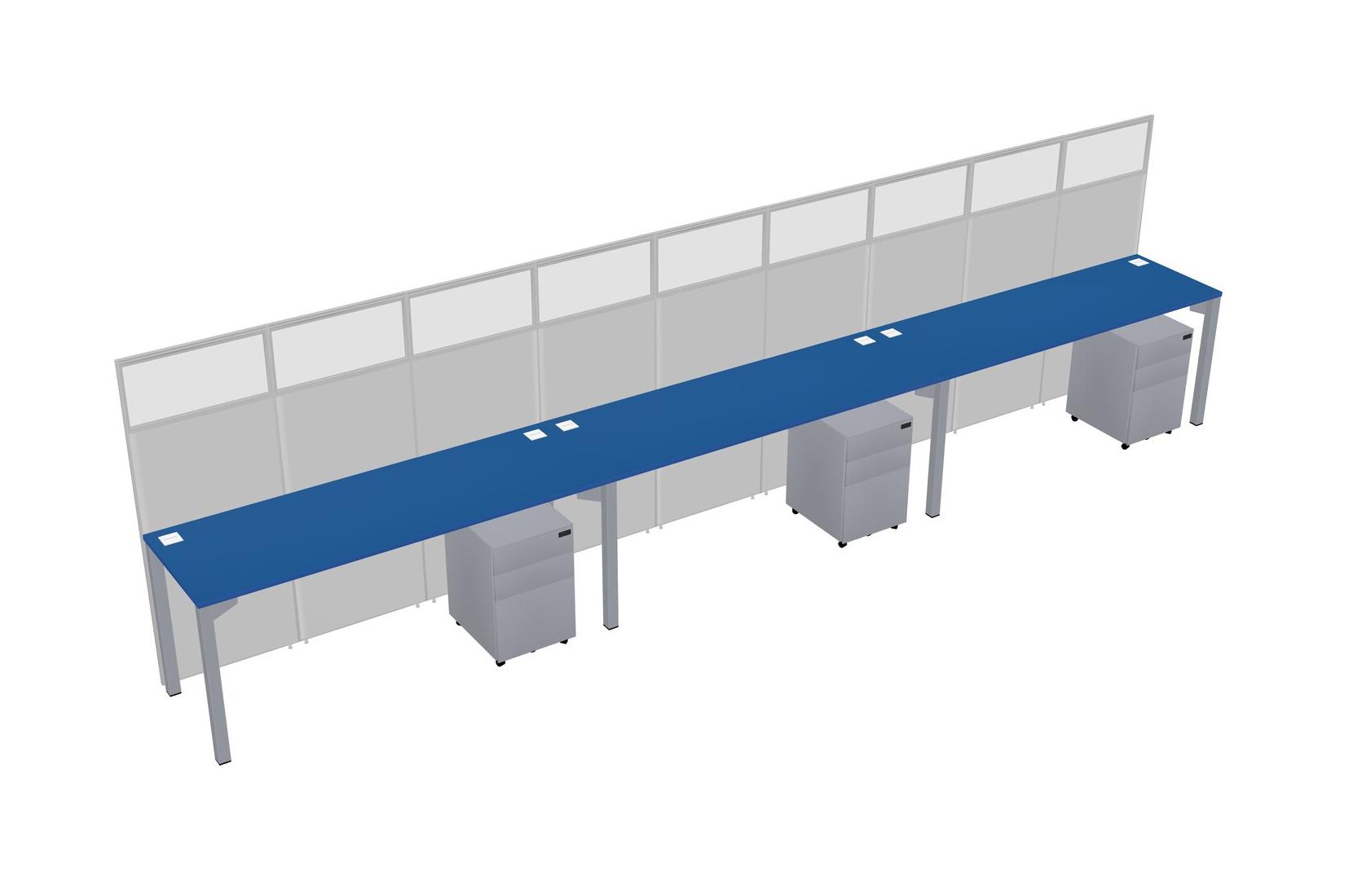 Prism Blue Shared Rectangular Office Cubicle Panel System With Mobile Drawers For 3 Persons