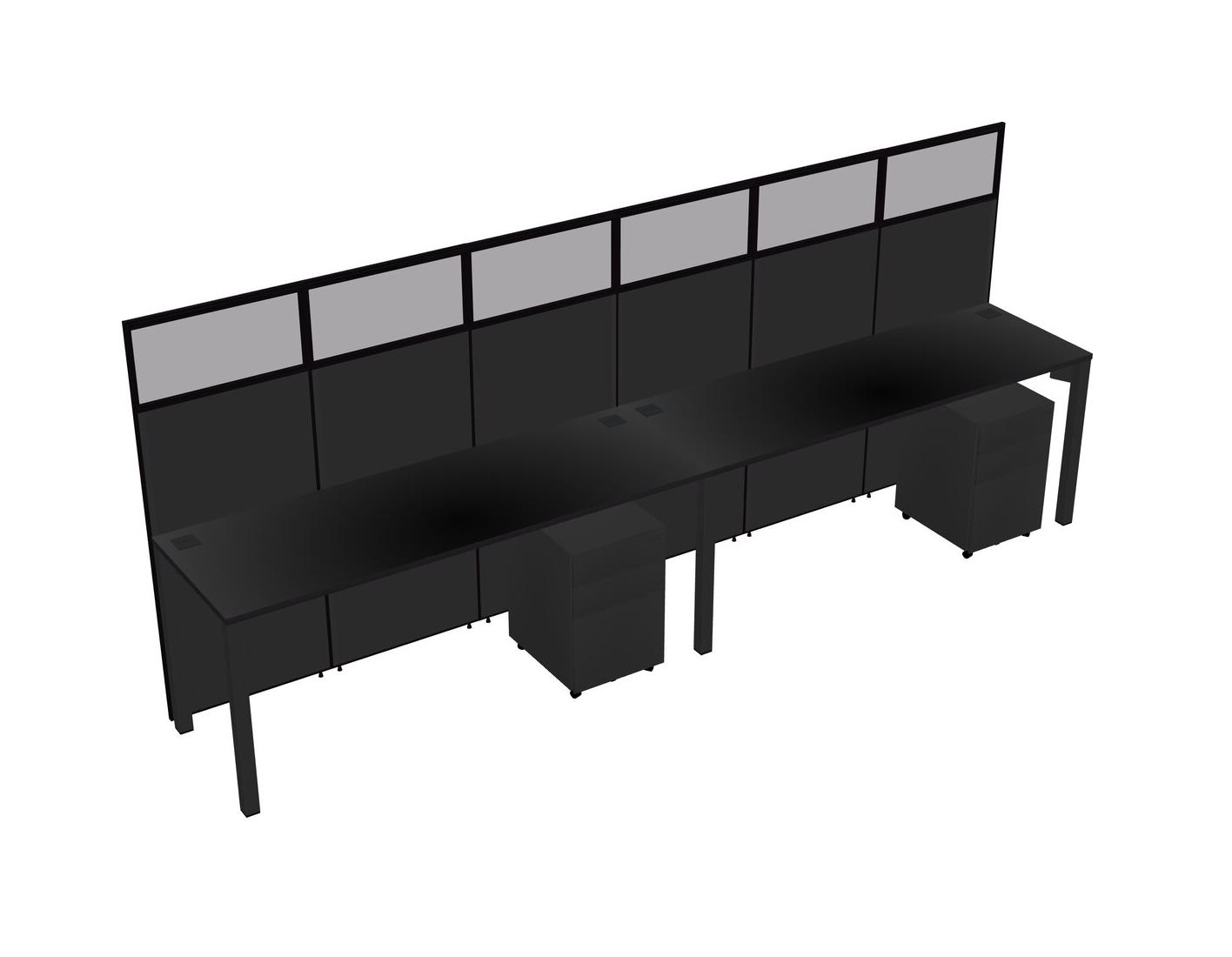 Black Shared Rectangular Office Cubicle Panel System With Mobile Drawers For 2 Persons