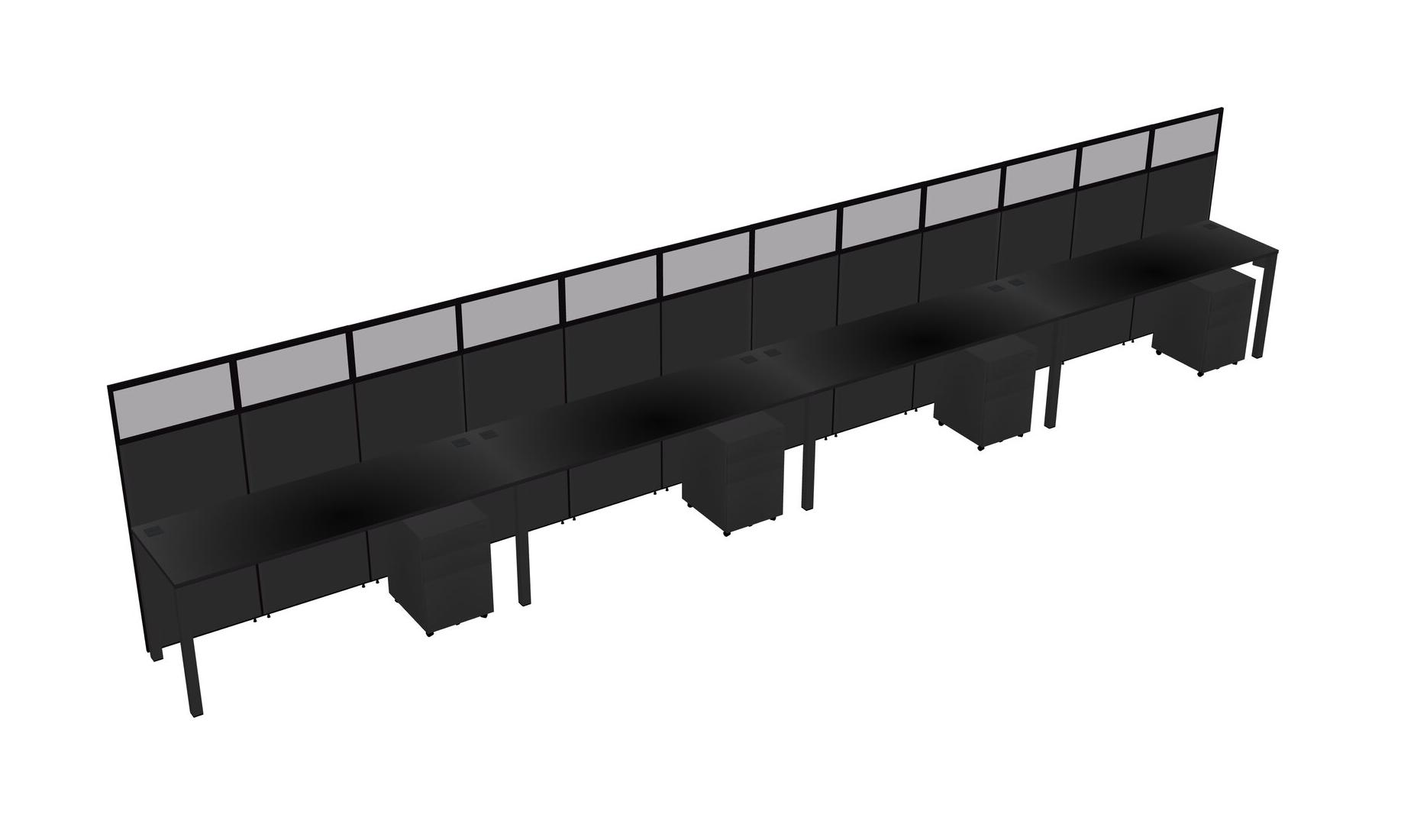 Black Shared Rectangular Office Cubicle Panel System With Mobile Drawers For 4 Persons