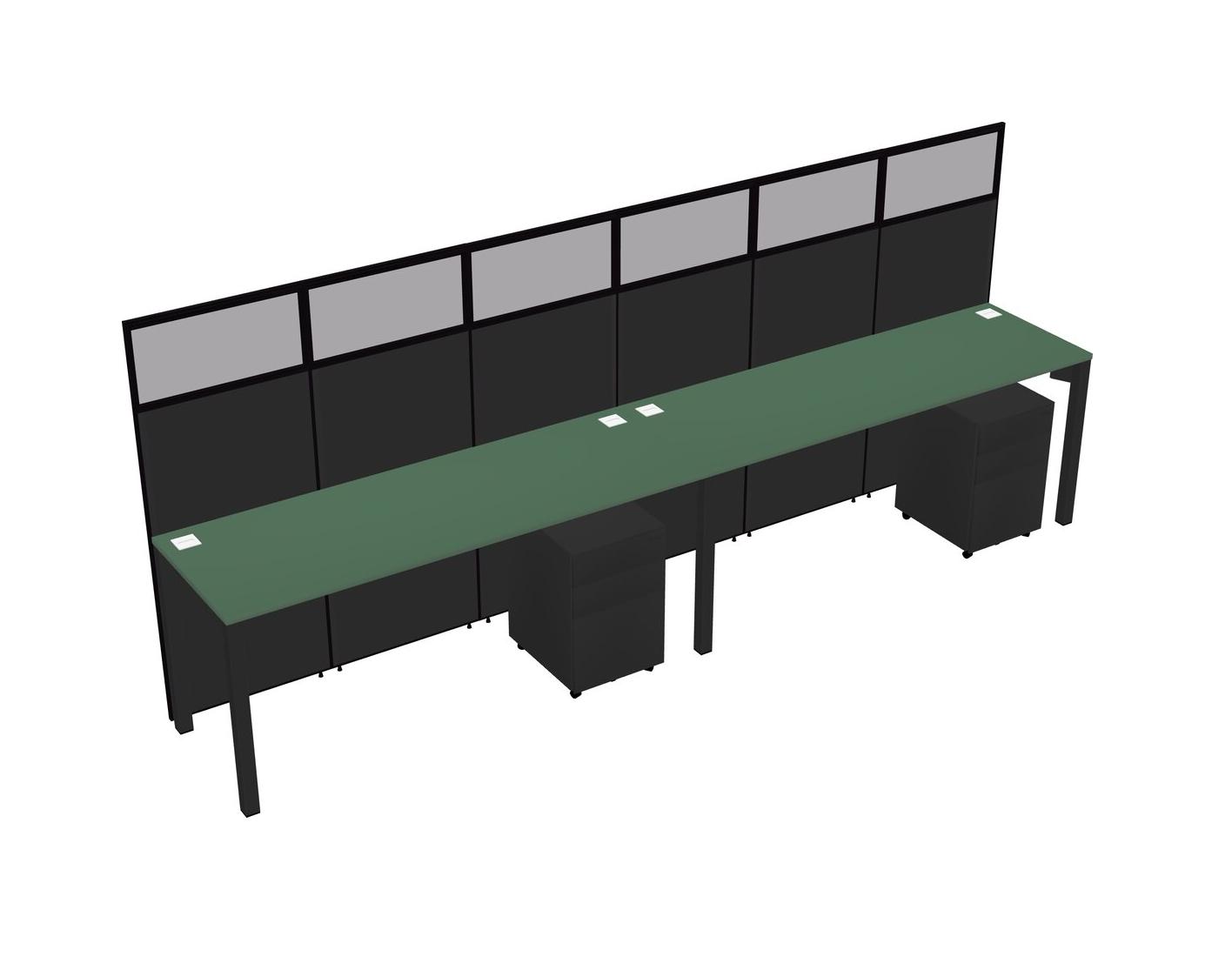 Green Shared Rectangular Office Cubicle Panel System With Mobile Drawers For 2 Persons