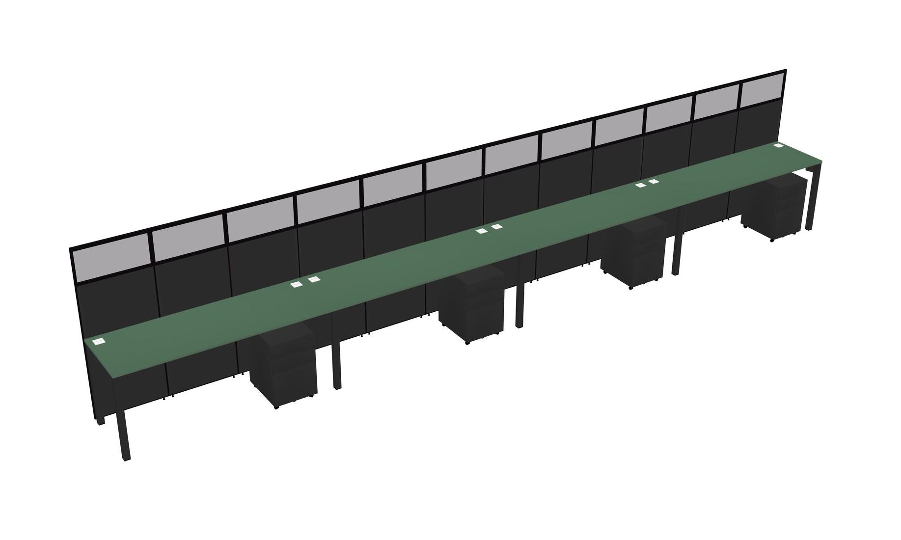 Green Shared Rectangular Office Cubicle Panel System With Mobile Drawers For 4 Persons