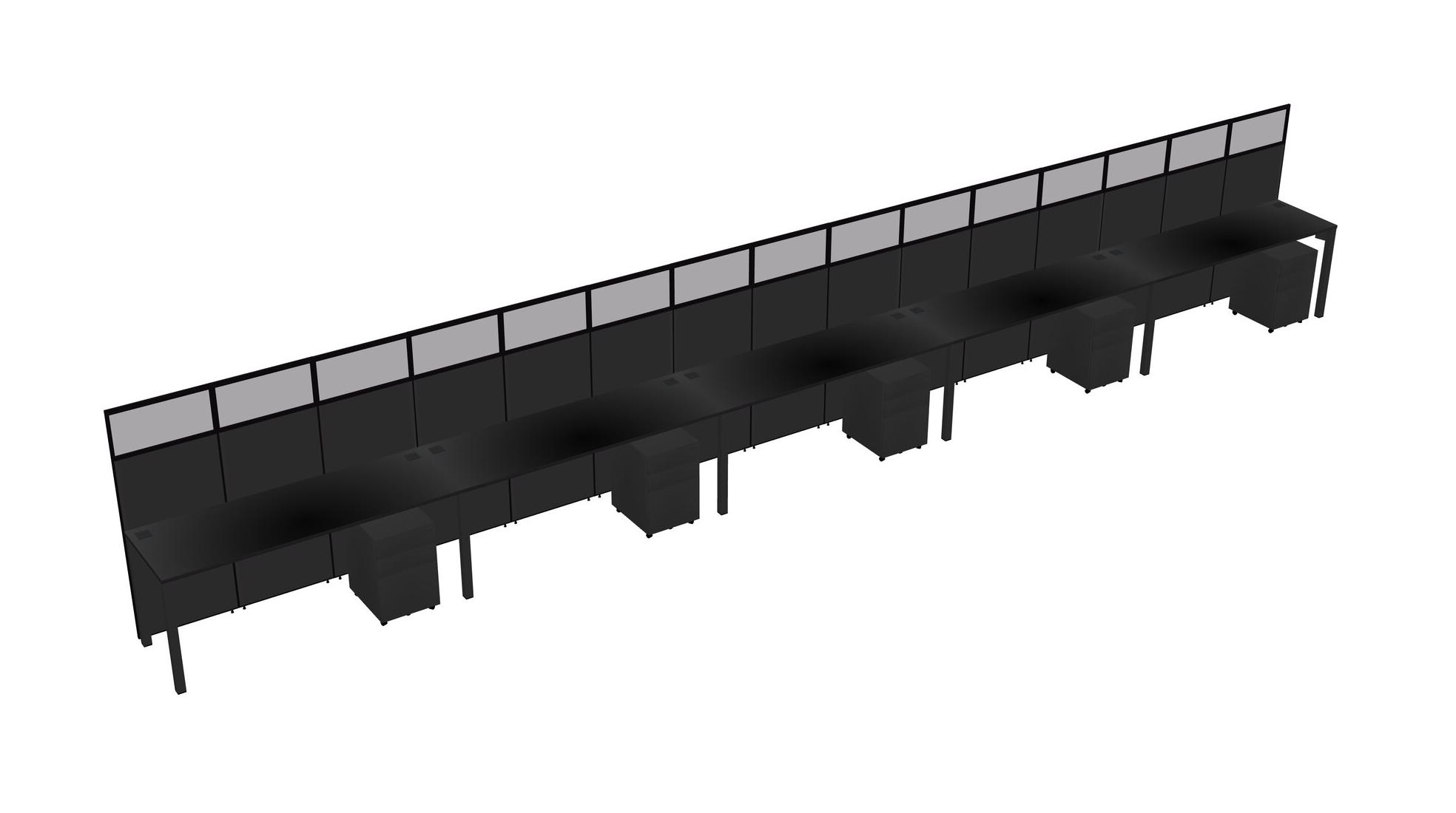 Black Shared Rectangular Office Cubicle Panel System With Mobile Drawers For 5 Persons
